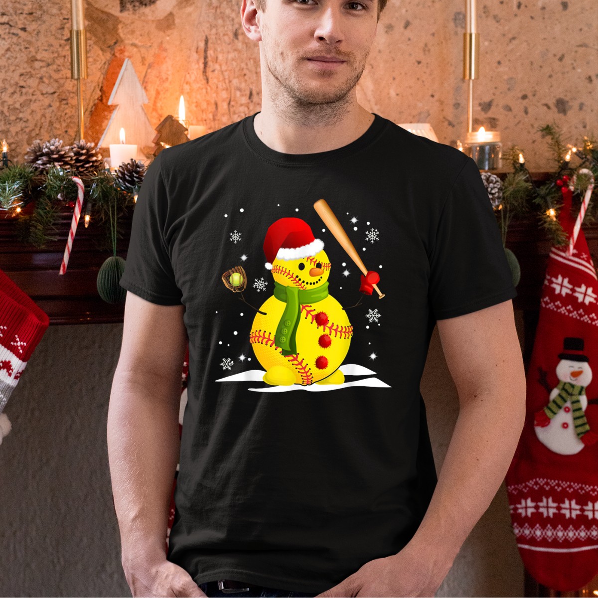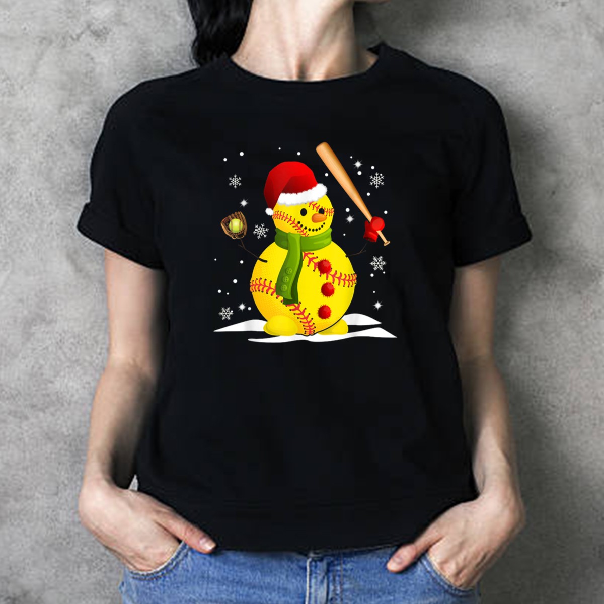 Be the first to review “Softball Christmas Snowman With Santa Hat And Bat Amidst Snowflakes T-Shirt”