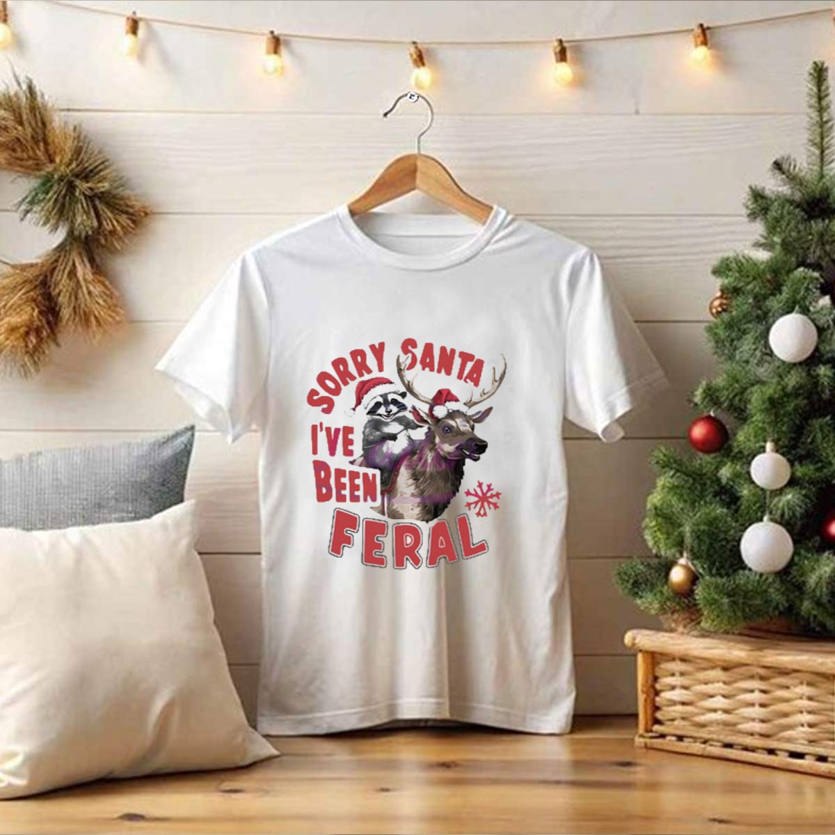 Be the first to review “Sorry Santa Ive Been Feral Raccoon Christmas Reindeer Santa Hat T Shirt”