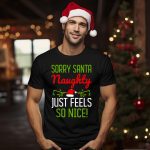 Get into the holiday spirit with our “Sorry Santa, Naughty Just Feels So Nice” festive T-shirt! Perfect for those who embrace their cheeky side during the Christmas season, this shirt is designed for anyone who loves to spread some fun and laughter at themed events, casual gatherings, or even just lounging around at home. Made with a fan-made design printed in the USA, it’s not just a shirt, but a statement piece that brings joy and a bit of mischief to your wardrobe.