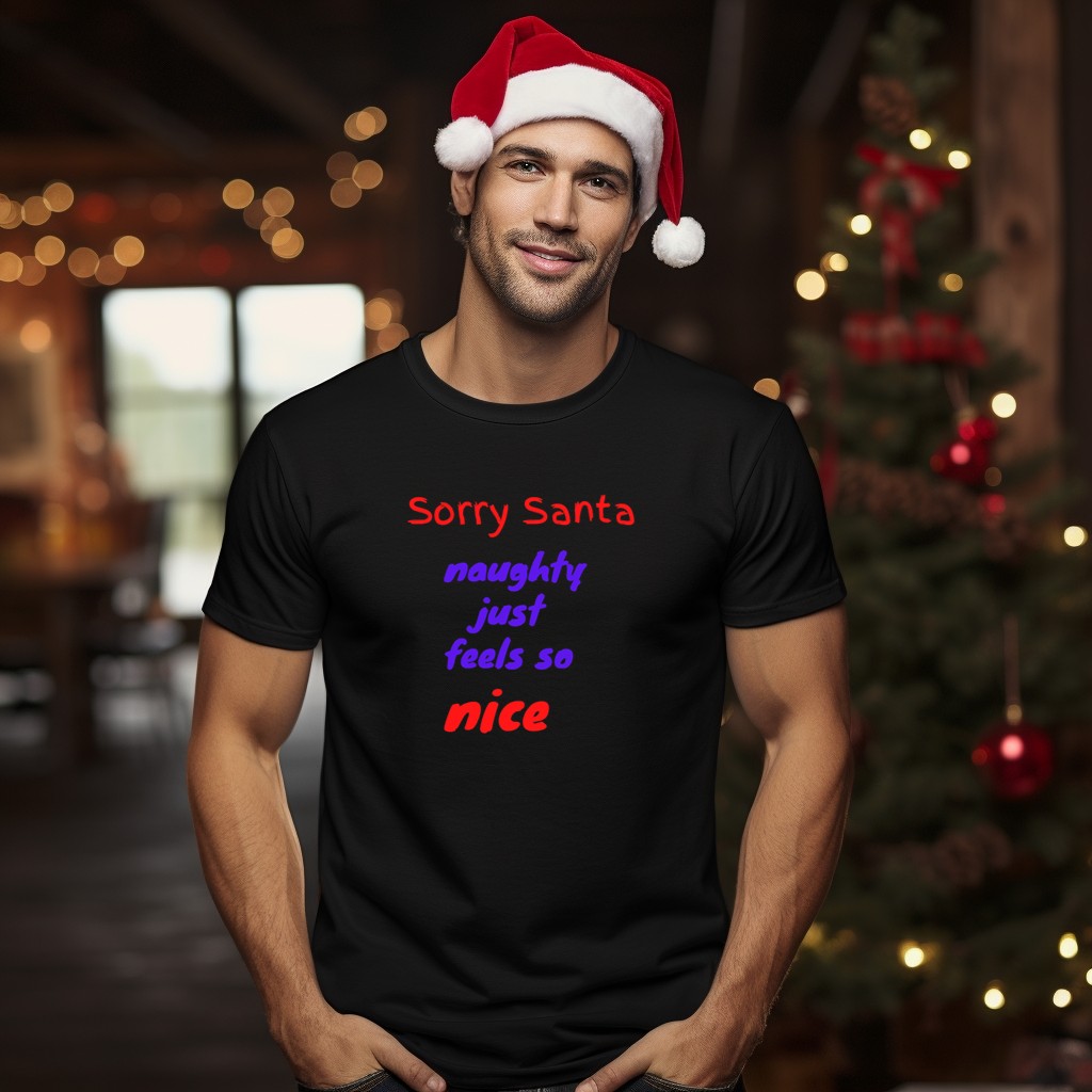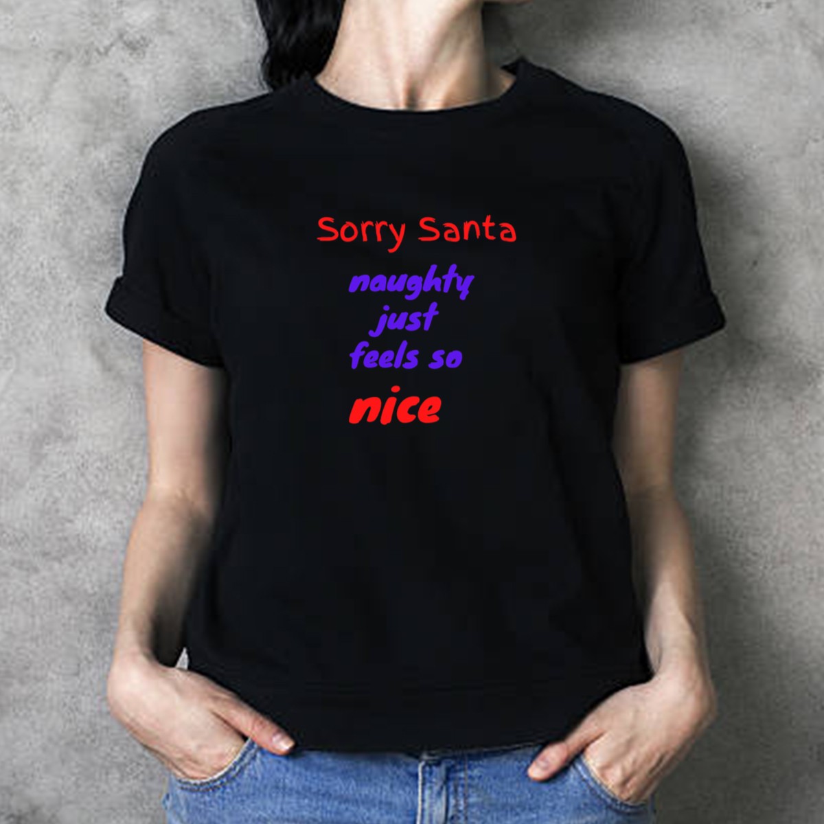 Embrace your cheeky side this holiday season with our “Sorry Santa Naughty Just Feels So Nice” graphic T-shirt! Perfect for those who enjoy a dash of humor during festive gatherings, this shirt brings a playful twist to holiday celebrations. Whether you’re attending a themed event, gathering with friends, or just spreading cheer in your daily wear, this fan-made design is a joyful statement piece that’s sure to spark smiles. Plus, it’s printed right here in the USA, ensuring quality and originality that stands out!