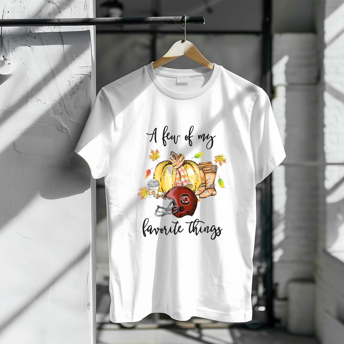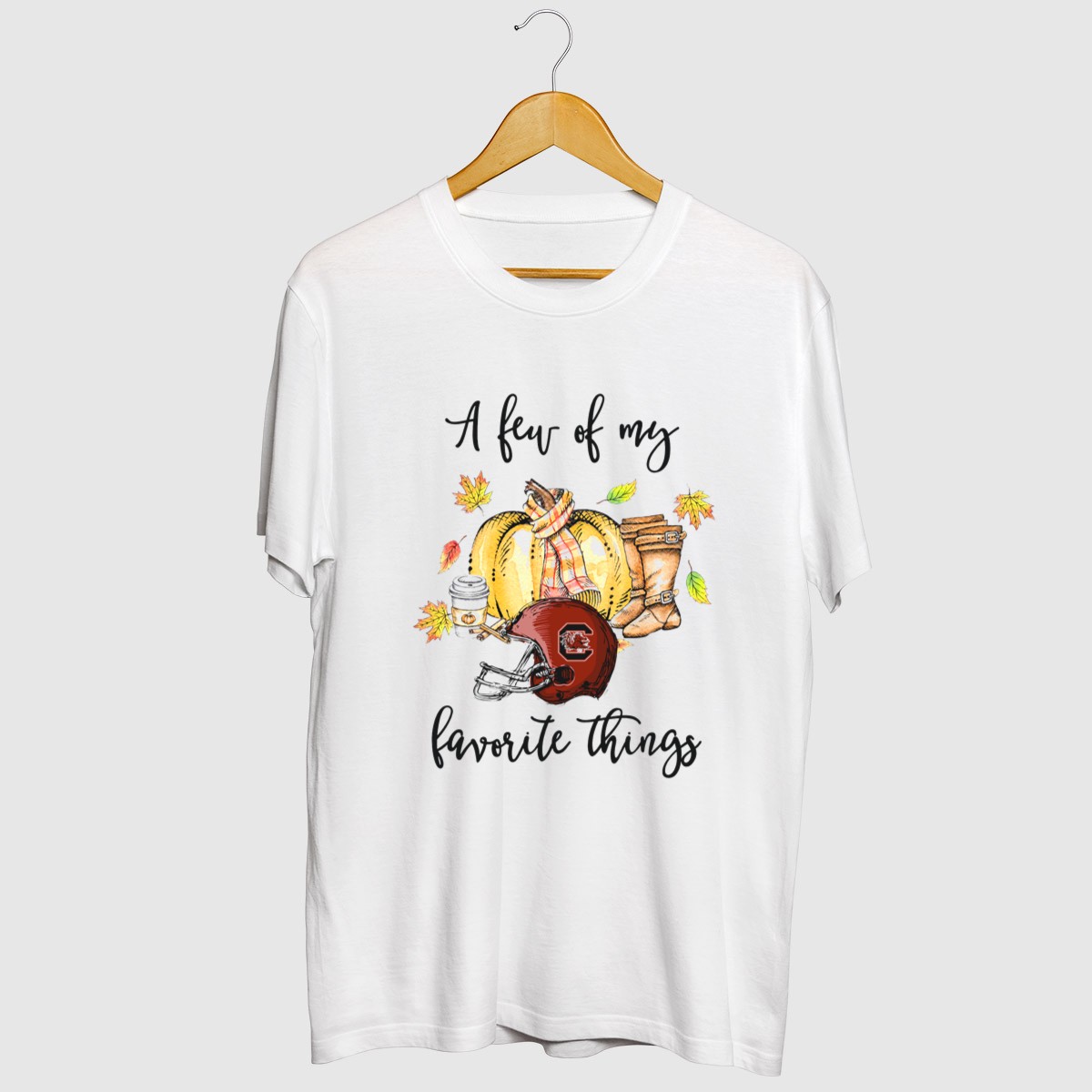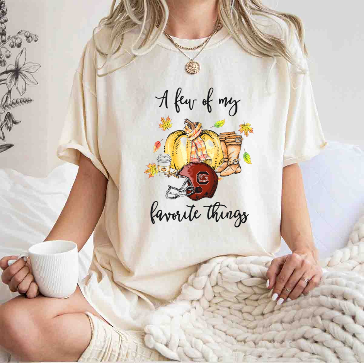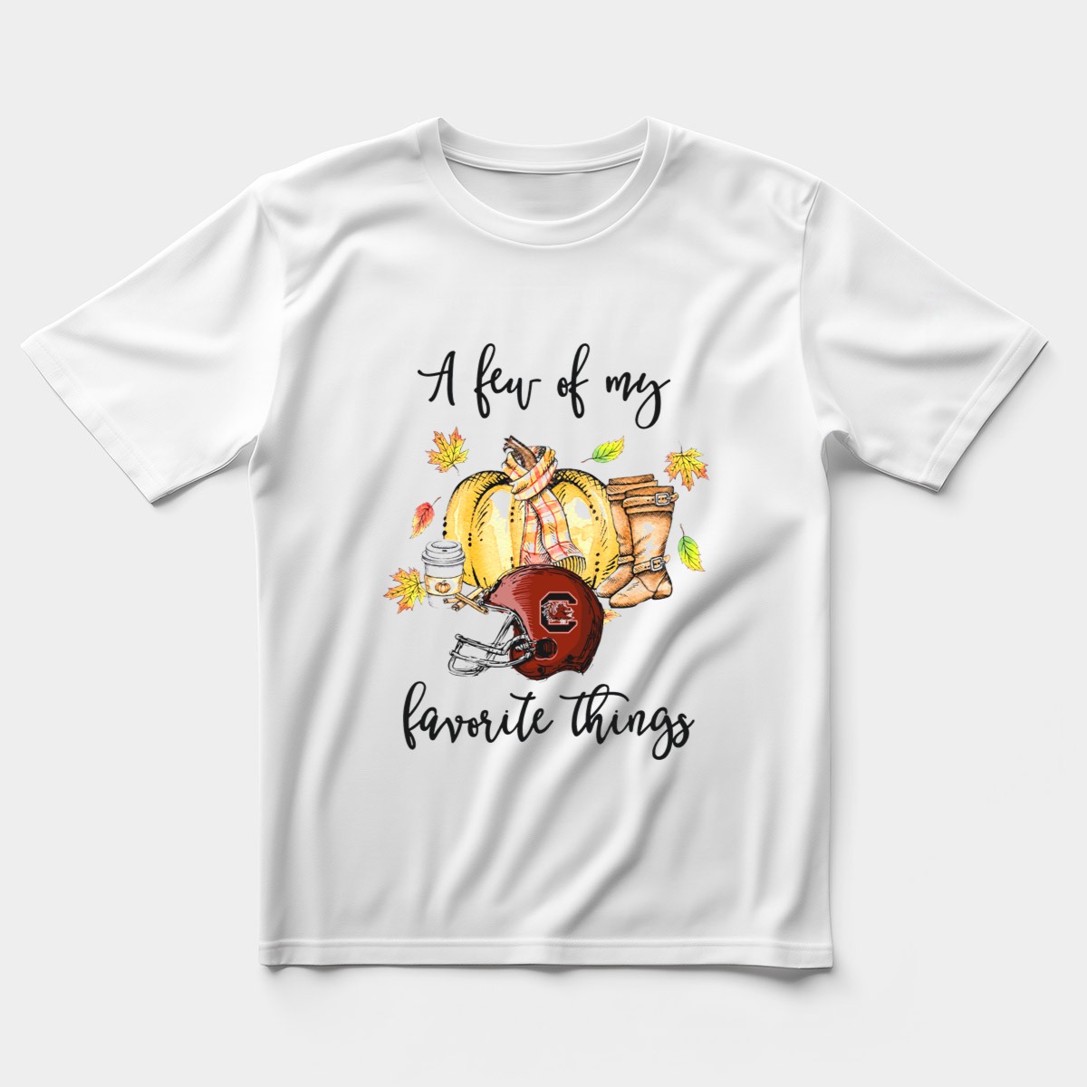 Show your love for the South Carolina Gamecocks with this fan-made “A Few of My Favorite Things” autumn football T-shirt! Perfect for dedicated fans and casual wearers alike, this shirt is designed for game days, themed events, or simply showcasing your spirit in everyday life. Made in the USA, it combines comfort and style, making it a must-have for any Gamecocks enthusiast looking to cheer on their team in cozy, classic fashion.