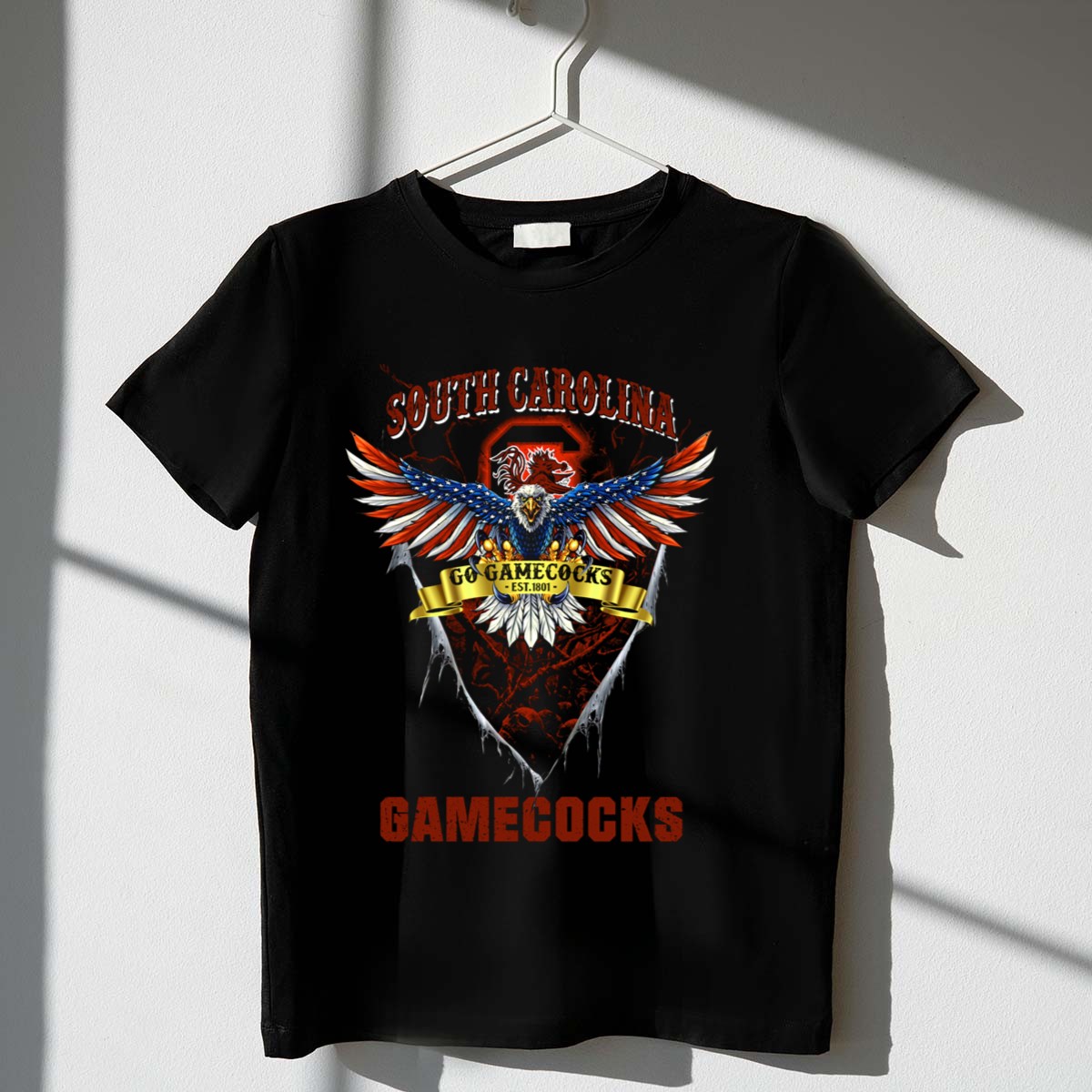 Show your unwavering support for the South Carolina Gamecocks with our fan-made Eagle Go Gamecocks Est 1801 T-Shirt. This classic unisex tee is perfect for die-hard fans and casual wearers alike. Whether you’re tailgating at Williams-Brice Stadium, attending themed events, or simply enjoying a day out, this shirt makes a bold statement of loyalty. Printed in the USA, it combines comfort with a design that captures the spirit of Gamecock pride.