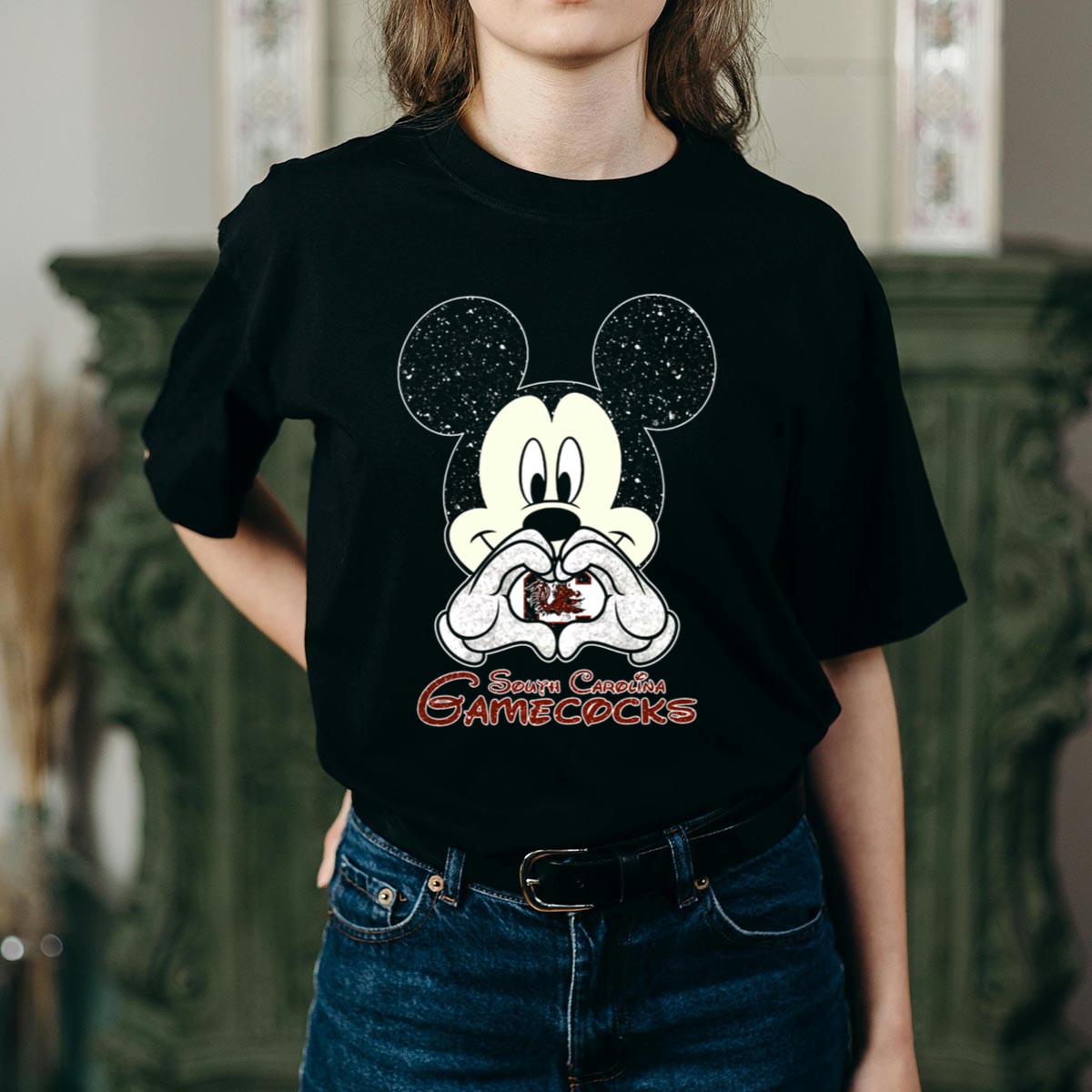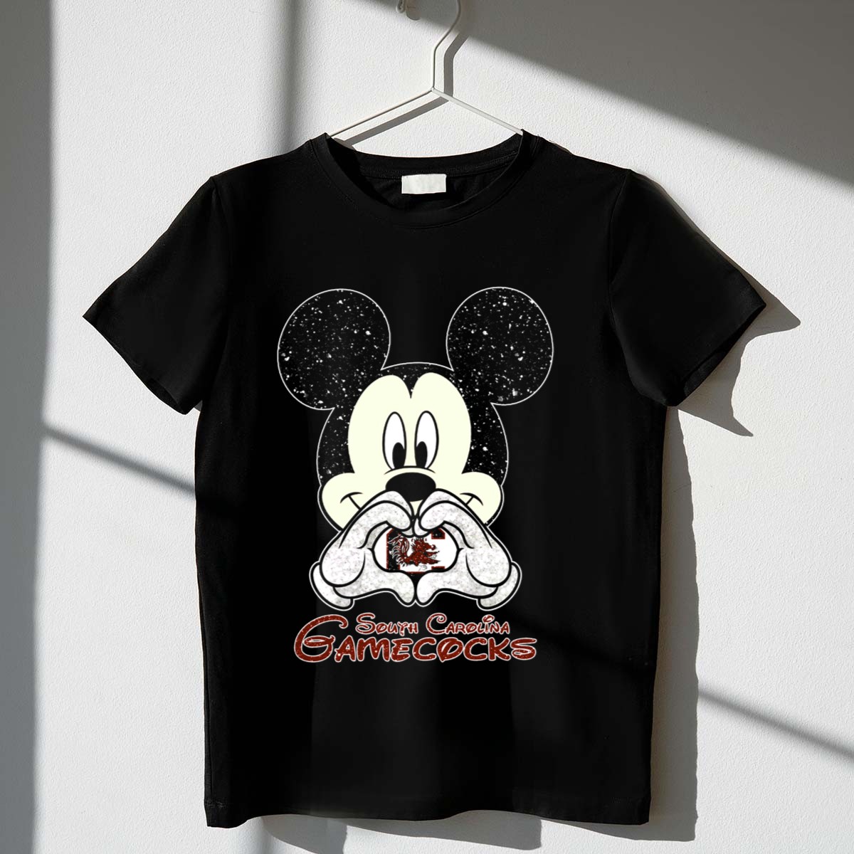 Show off your Gamecocks pride with our South Carolina Gamecocks Mickey Mouse Heart Hands T-Shirt! Perfect for fans of all ages, this unique design combines the beloved Disney character with your favorite college team, making it an ideal choice for casual outings, themed events, or everyday wear. Whether you’re cheering from the stands or hanging out with friends, this shirt is a fun and stylish way to express your love for the Gamecocks!