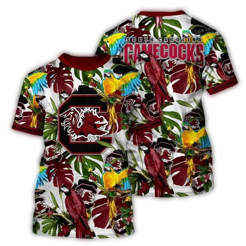 Step into the vibrant spirit of South Carolina with our Gamecocks Parrot Leafs Art AOP T-Shirt! This casual and graphic tee is perfect for fans of all ages, making it an ideal choice for game days, casual outings, or just expressing your love for the Gamecocks in style. With its unique all-over print design, you’ll stand out from the crowd and showcase your team pride effortlessly.