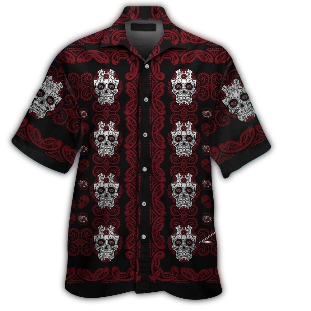 Embrace your team spirit with our South Carolina Gamecocks Sugar Skull Hawaiian Shirt, perfect for die-hard fans looking to showcase their love for the Gamecocks in a unique and stylish way. This eye-catching shirt is ideal for summer outings, beach trips, or backyard barbecues, making it a must-have addition to your casual wardrobe.