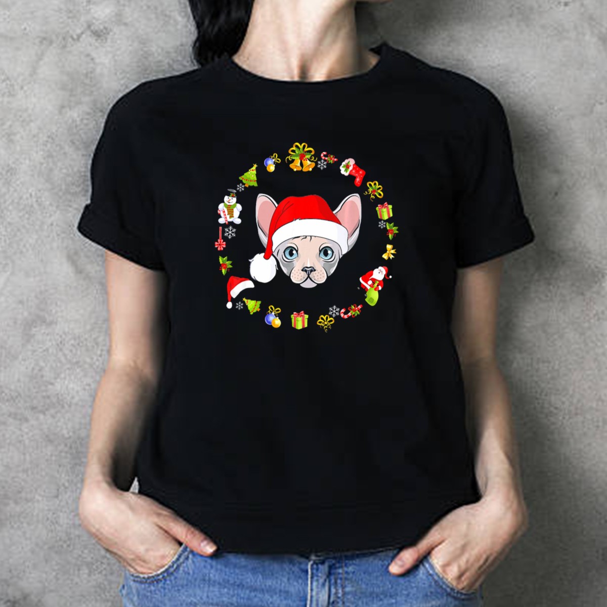 This fun and festive graphic T-shirt features an adorable Sphynx cat wearing a Santa hat, surrounded by whimsical Christmas decorations that are sure to bring a smile to anyone’s face. Perfect for cat lovers and holiday enthusiasts alike, this shirt is ideal for casual wear, themed events, or simply spreading cheer during the holiday season. Its unique fan-made design is printed in the USA, making it a special addition to your wardrobe or a thoughtful gift for friends and family.