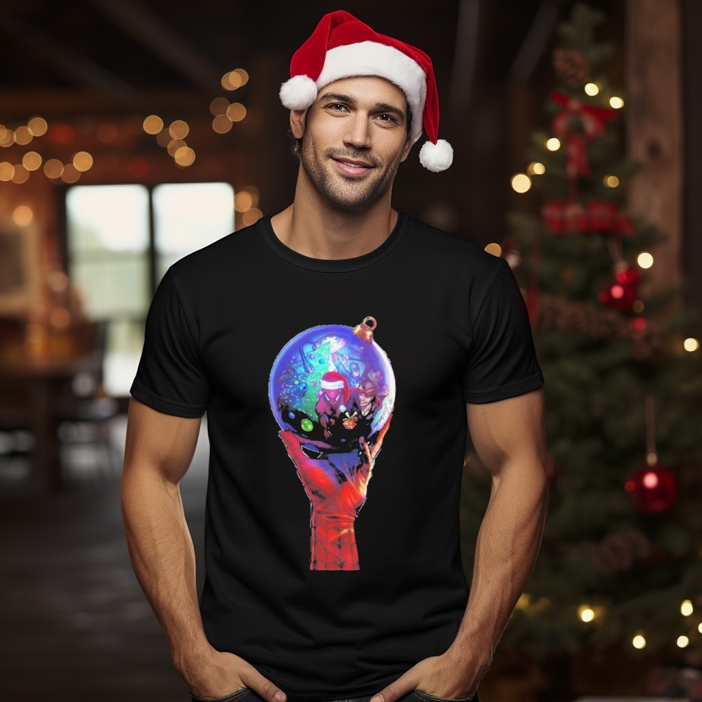 Celebrate the festive season with our Spider Man Christmas Ornament With Santa Hat Reflection T-Shirt! This fun and unique design is perfect for fans of all ages who want to embrace the holiday spirit while showcasing their love for the iconic superhero. Ideal for casual outings, themed events, or daily wear, this shirt is a must-have for any Marvel enthusiast looking to add a playful touch to their wardrobe. Plus, it’s fan-made and printed right here in the USA, making it a special addition to your collection.