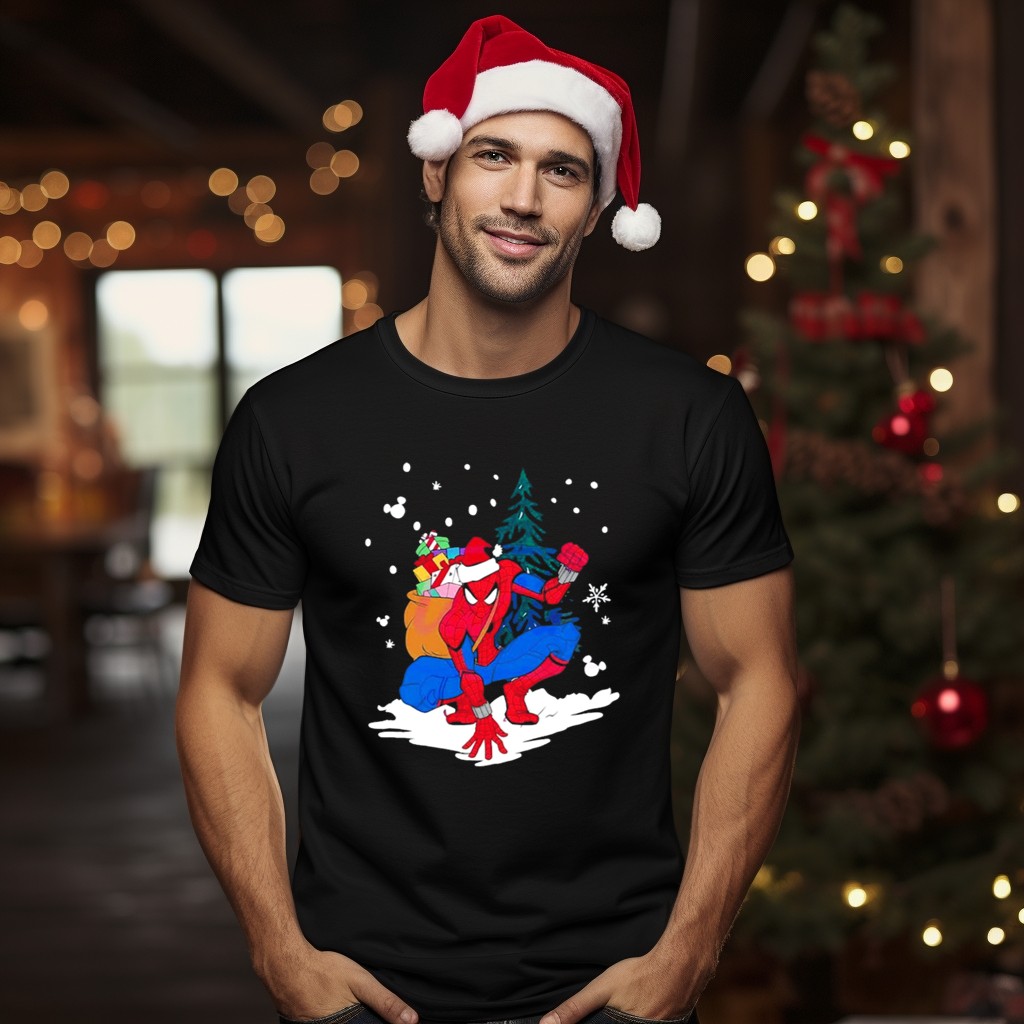 Celebrate the holiday season with our Spiderman Santa Christmas Tree Snow Presents T-Shirt! This festive tee is perfect for comic book fans who want to bring a touch of superhero spirit to their casual wear. Whether you’re attending a themed event, gathering with family, or just enjoying daily wear, this unique fan-made design will make you stand out. Printed in the USA, it’s the ideal way to spread cheer and show off your love for Spiderman during the holidays!