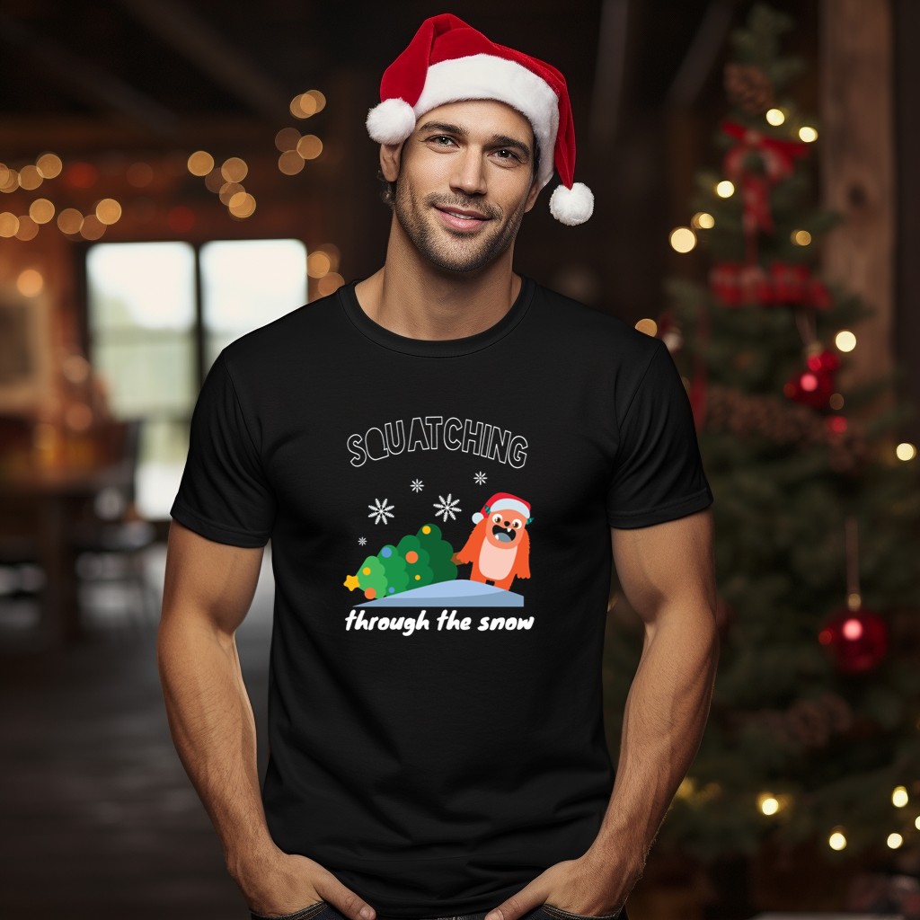 Embrace the holiday spirit with our Squatching Through The Snow Christmas T-shirt, featuring a playful Sasquatch design donned in a festive Santa hat. Perfect for those who love to blend humor with holiday cheer, this shirt is ideal for casual get-togethers, themed events, or simply enjoying daily wear during the winter season. With its unique fan-made design printed in the USA, it’s a fun way to showcase your love for all things Sasquatch while celebrating the joys of the festive season.