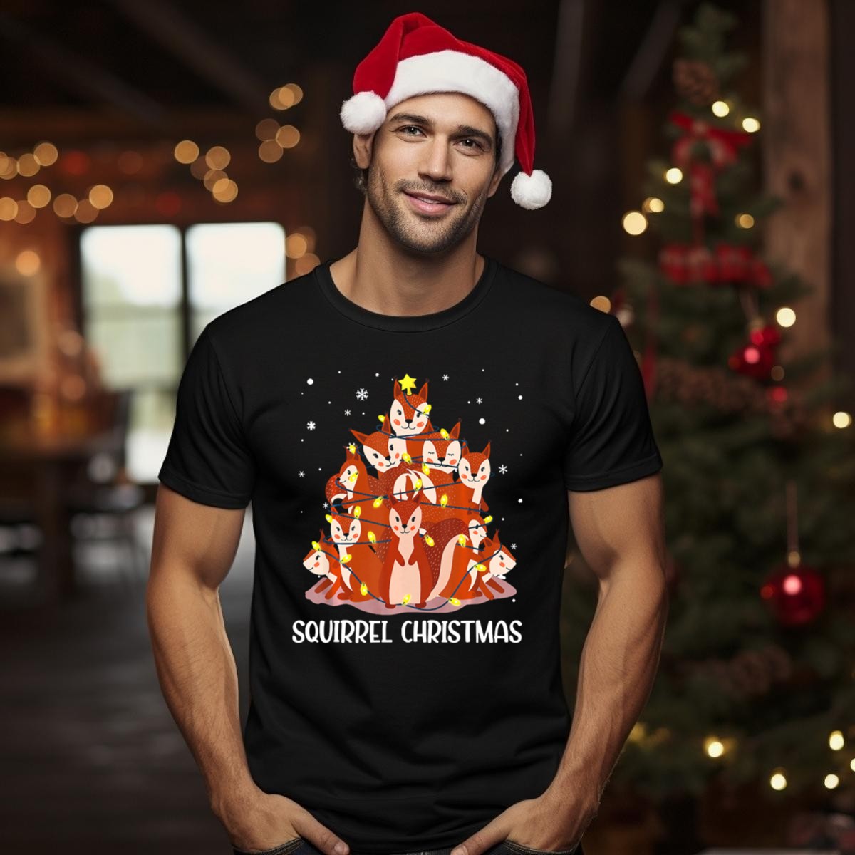 Celebrate the whimsical charm of the holiday season with our Squirrel Christmas Tree T-shirt! Perfect for animal lovers and festive spirits alike, this fan-made design features an adorable squirrel surrounded by colorful holiday lights, making it an ideal choice for casual wear, themed events, or daily festivities. Crafted for comfort and style, this shirt is a delightful addition to your winter wardrobe that brings joy and cheer wherever you go!