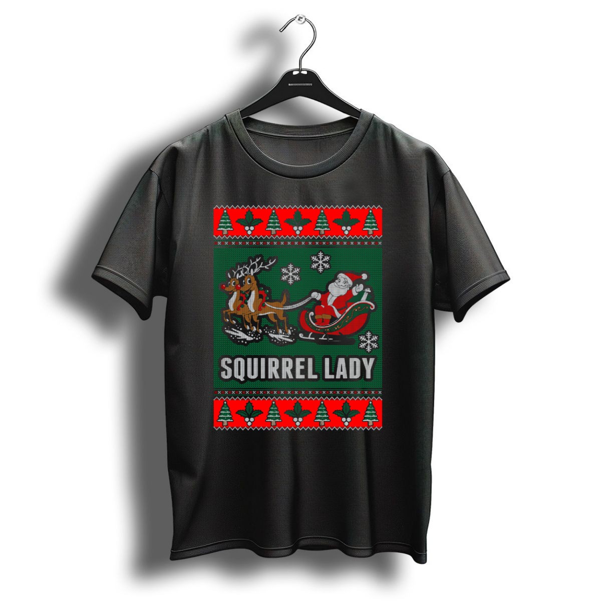Celebrate the holiday spirit with our Squirrel Lady Santa Sleigh Reindeer Christmas Trees And Snowflakes T-Shirt! Perfect for festive gatherings, themed events, or just spreading cheer during the holiday season, this fun and whimsical design is ideal for anyone who loves to embrace the joy of Christmas. Made for comfort and style, it’s a unique addition to your casual wardrobe that showcases your fun personality and holiday spirit.