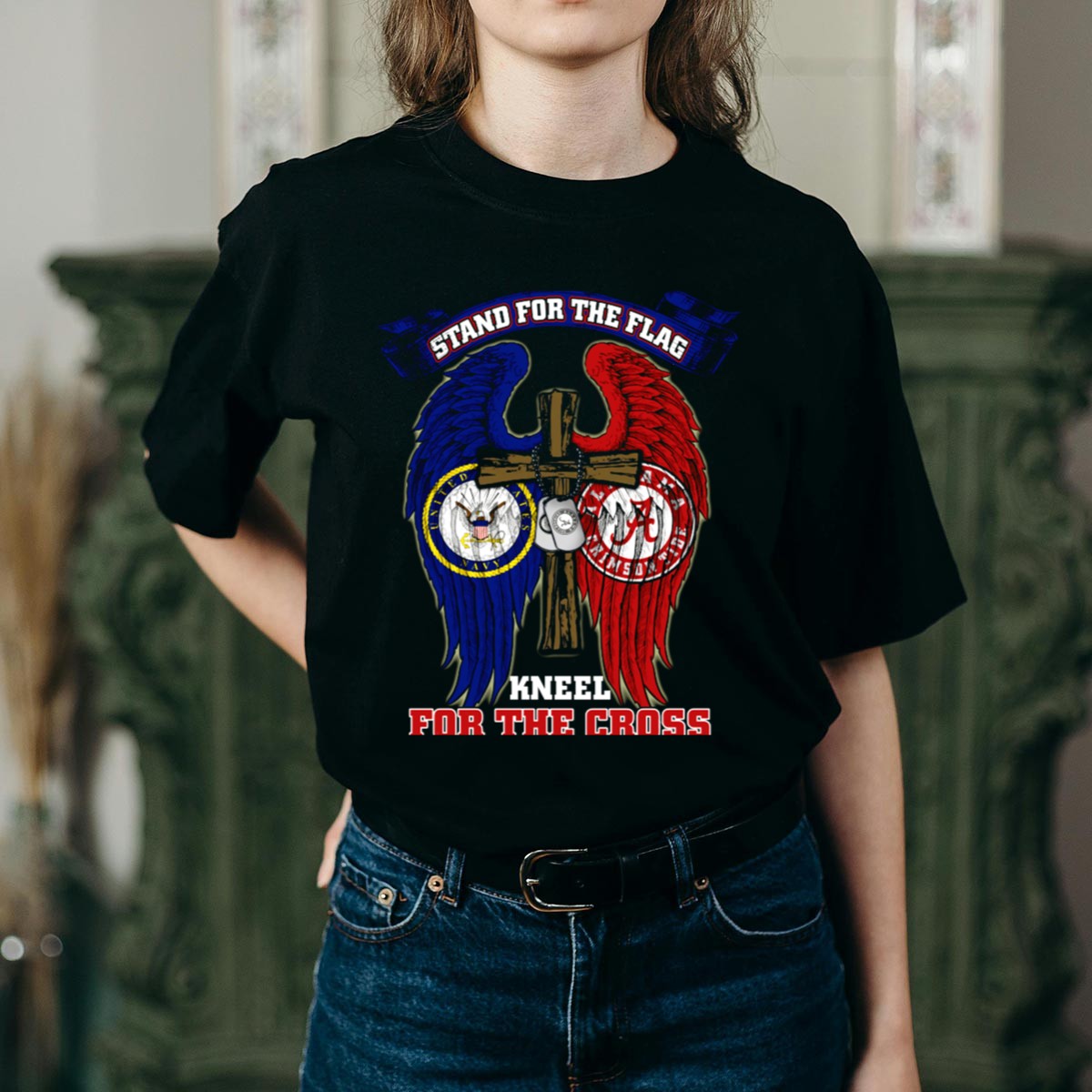 Stand For The Flag Kneel For The Cross Us Navy Alabama Crimson Tide T Shirt