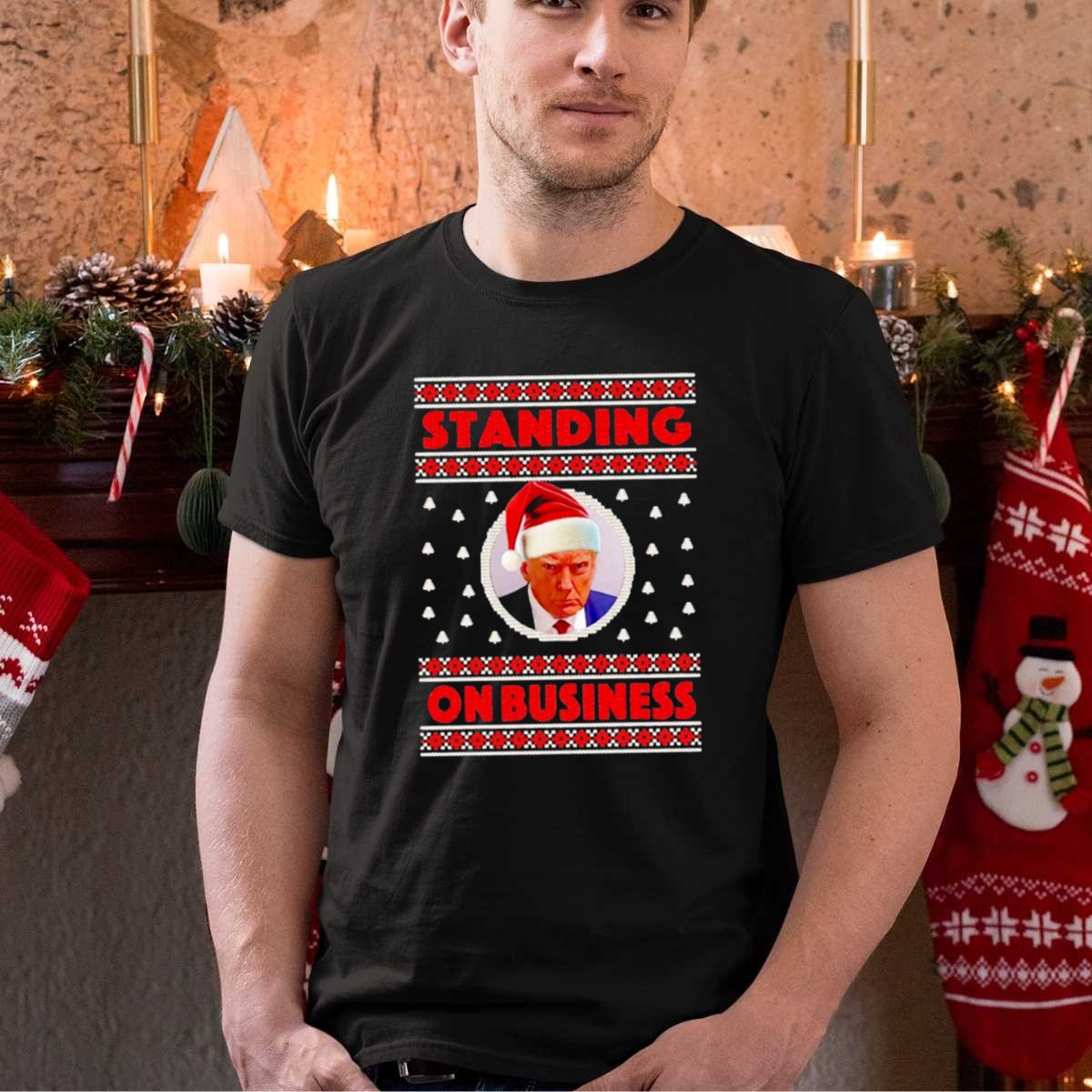 Get ready to spread some holiday cheer with our Standing On Business Donald Trump Santa Ugly Christmas T-Shirt! This playful and eye-catching shirt features a fan-made design that blends festive spirit with a touch of humor, making it perfect for anyone looking to make a statement at themed events, family gatherings, or casual outings. Crafted for comfort and style, this shirt is a fun addition to your all-season wardrobe that showcases your unique personality and festive flair.