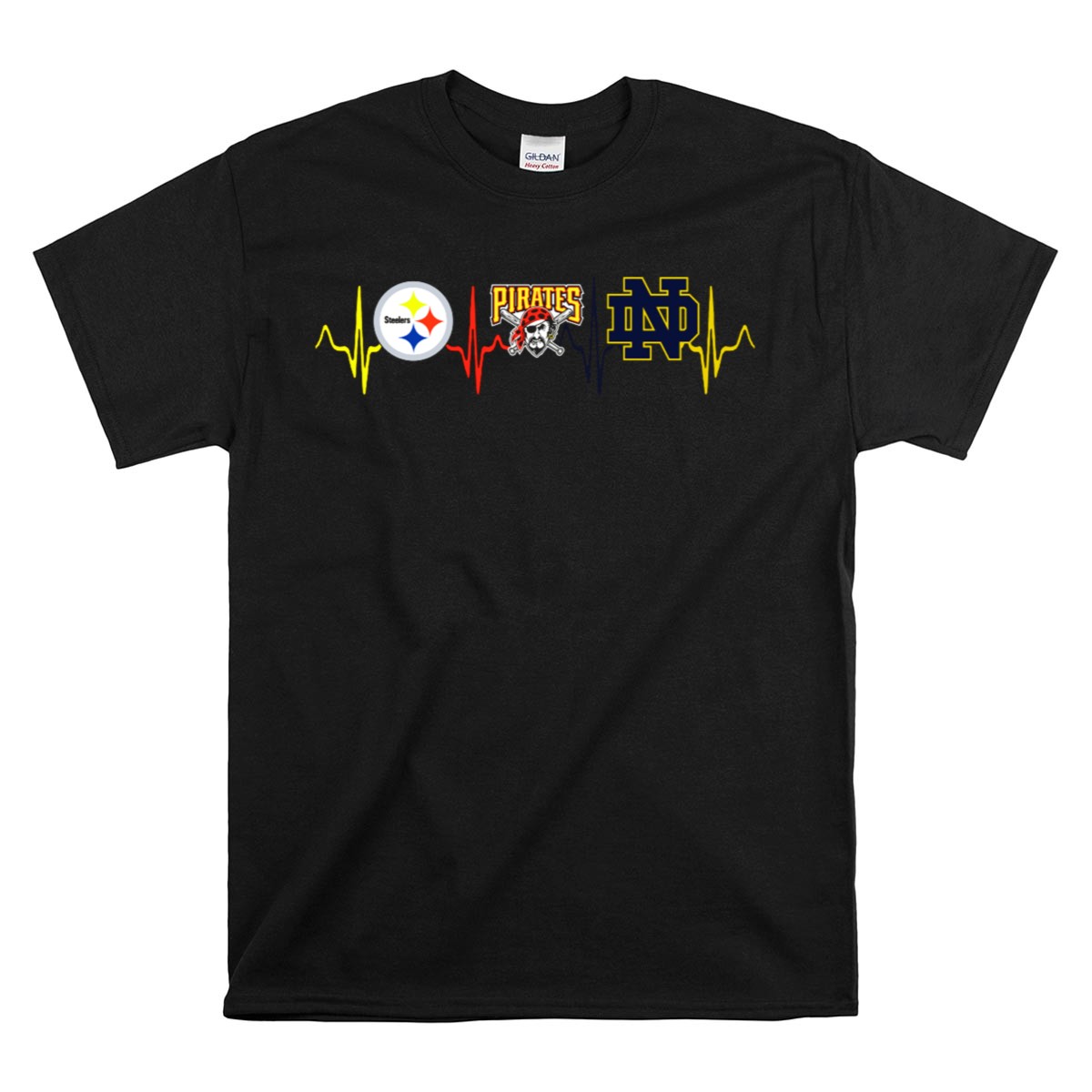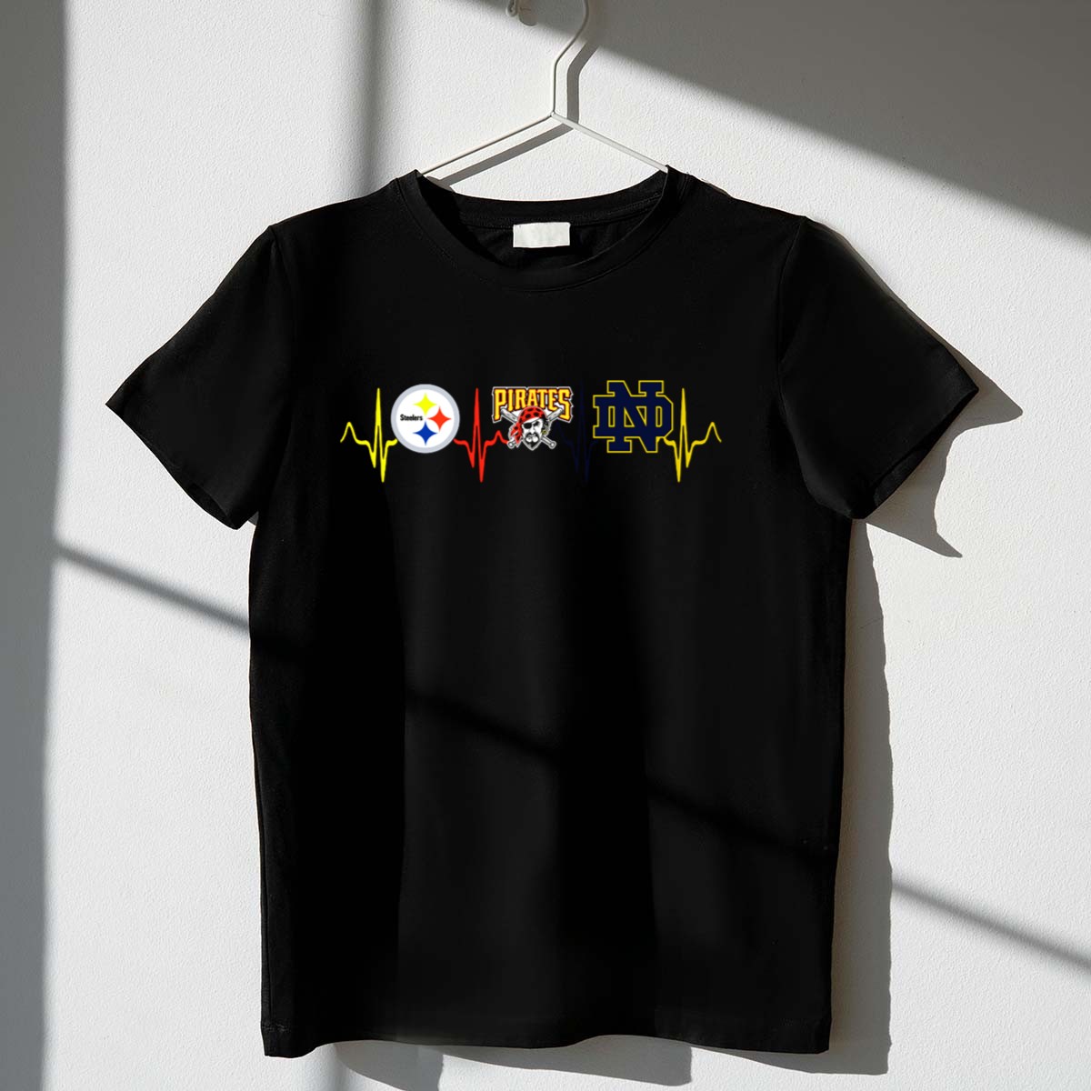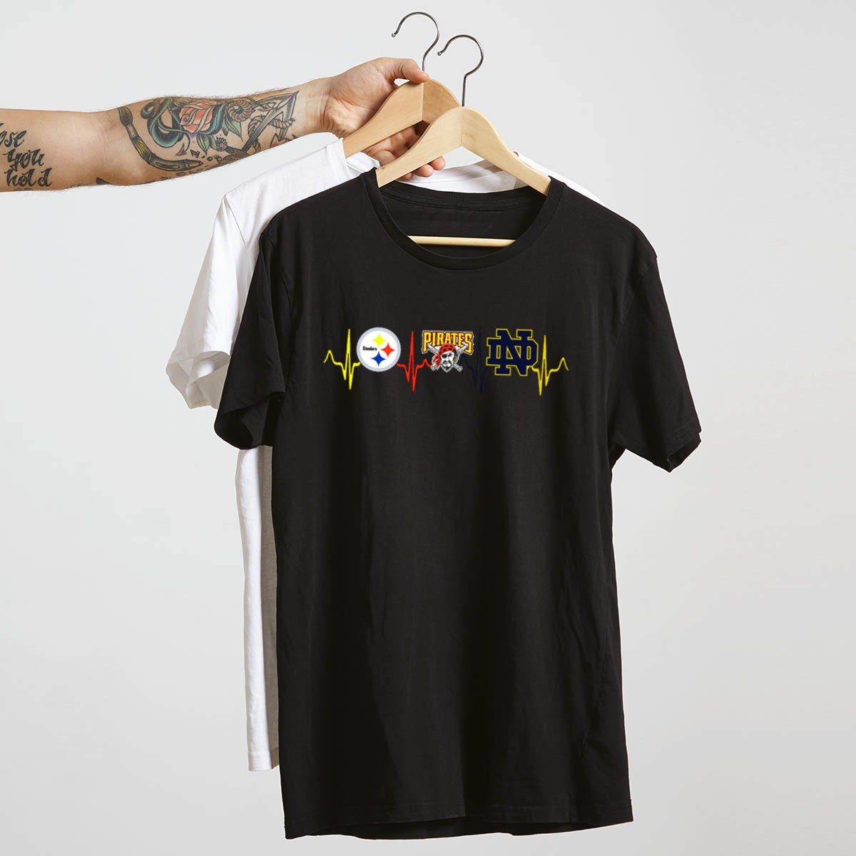 Show your unwavering support for the Steelers, Pirates, and Notre Dame Fighting Irish with this eye-catching Heartbeat T-Shirt! Perfect for dedicated fans, this shirt is ideal for casual outings, themed events, or simply showcasing your team spirit in everyday life. Made with love in the USA, the unique fan-made design captures the heartbeat of your favorite teams, making it a standout addition to any wardrobe.
