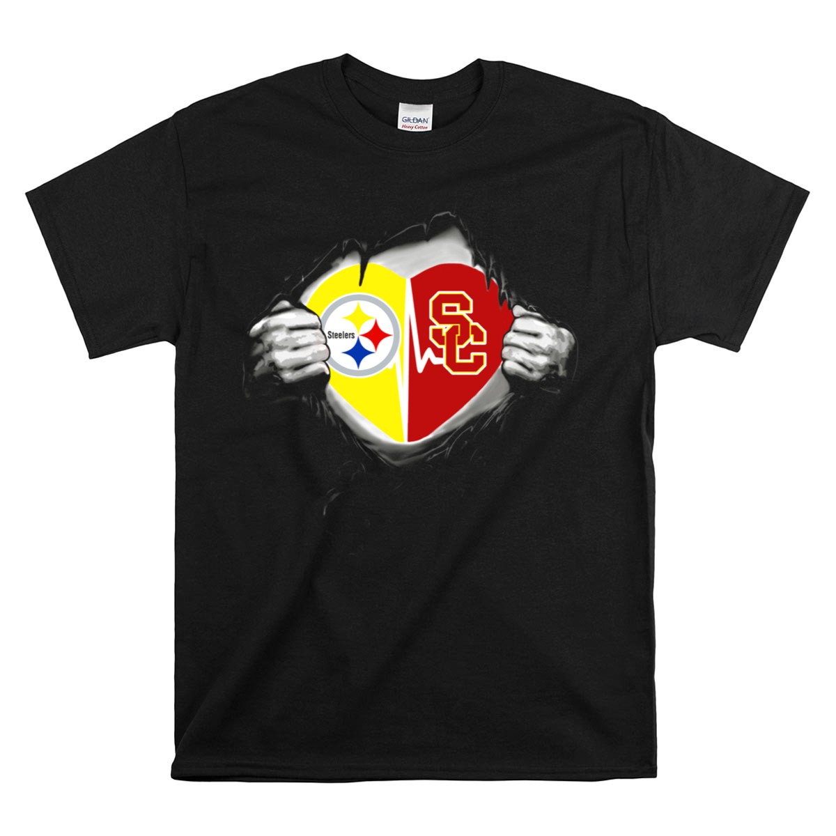 Show your pride for both the Pittsburgh Steelers and USC Trojans with this unique fan-made T-shirt, perfect for sports enthusiasts and casual wearers alike. Crafted from 100% cotton, this soft and breathable shirt is designed for comfort during all your daily adventures, whether you’re cheering from the stands or hanging out with friends. The classic fit and stylish round neck make it an ideal choice for themed events or just lounging around, showcasing your loyalty to two iconic teams in one standout design.
