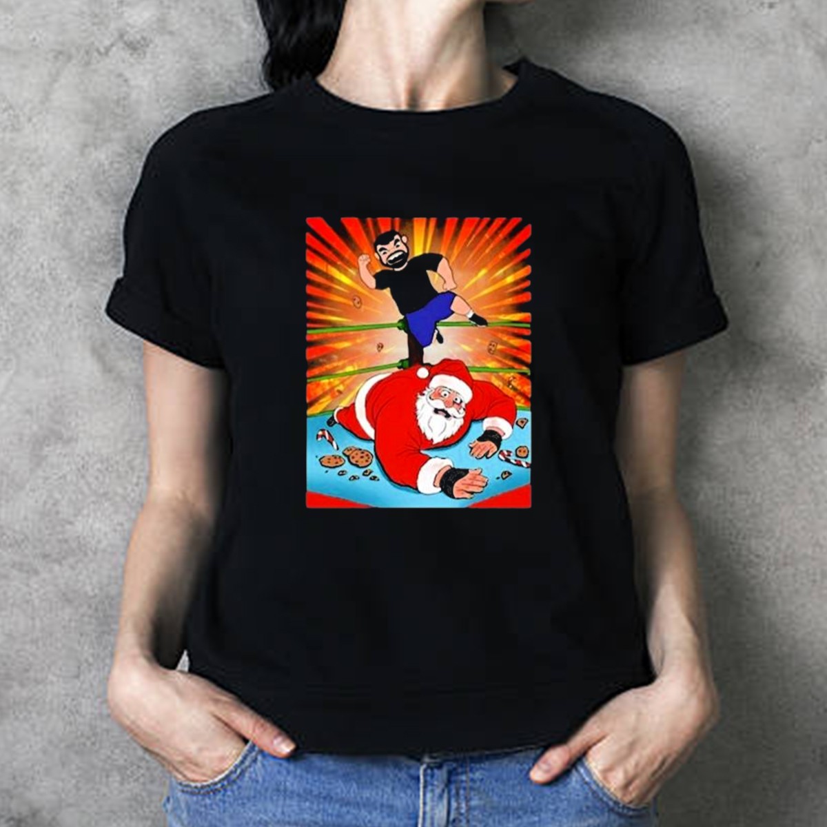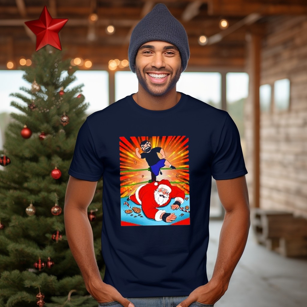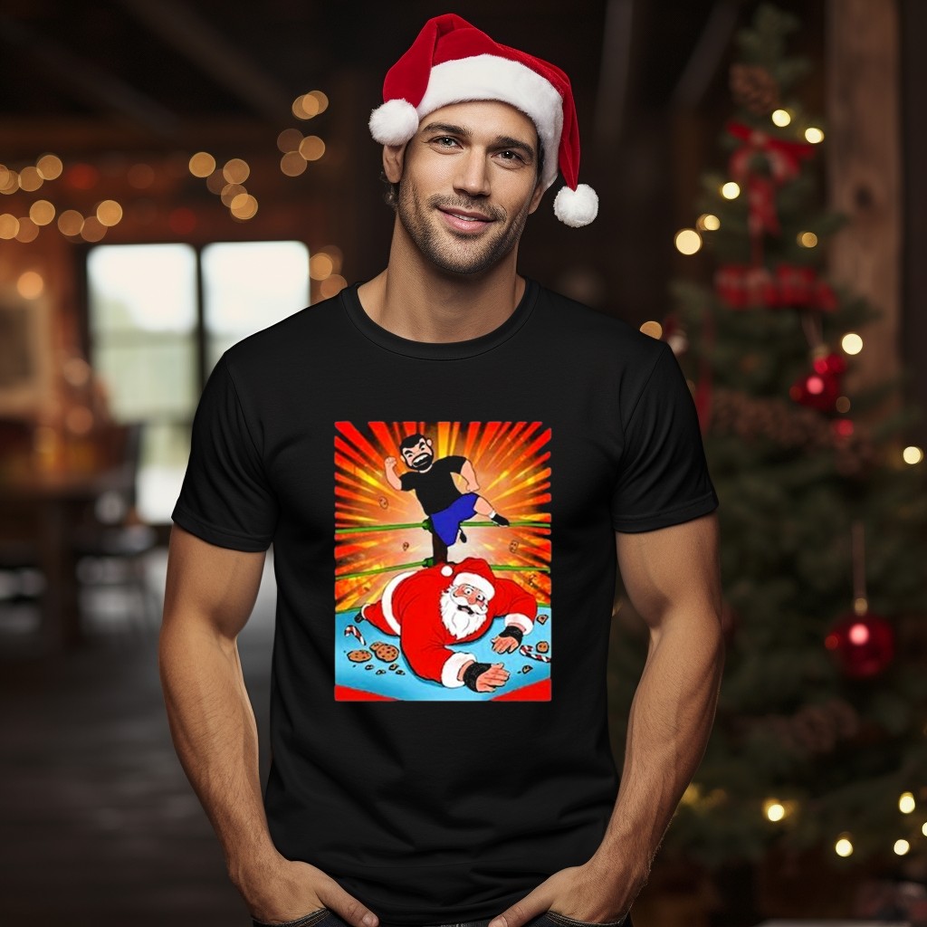 Get ready to embrace the holiday spirit with our Super Humman Jess Jeckel Wrestling Santa Christmas Carnage T-Shirt! This fan-made design is perfect for anyone who loves to add a twist to traditional festive apparel. Ideal for casual outings, themed events, or just lounging at home, this unique shirt brings a playful edge to your holiday wardrobe. Printed right here in the USA, it’s not just a shirt; it’s a statement that celebrates the fun side of the season!