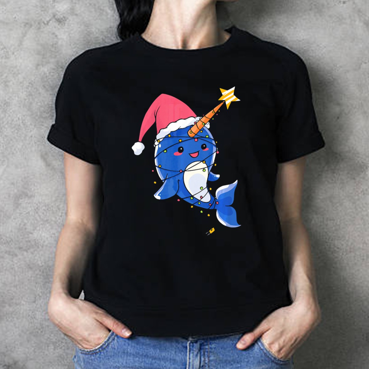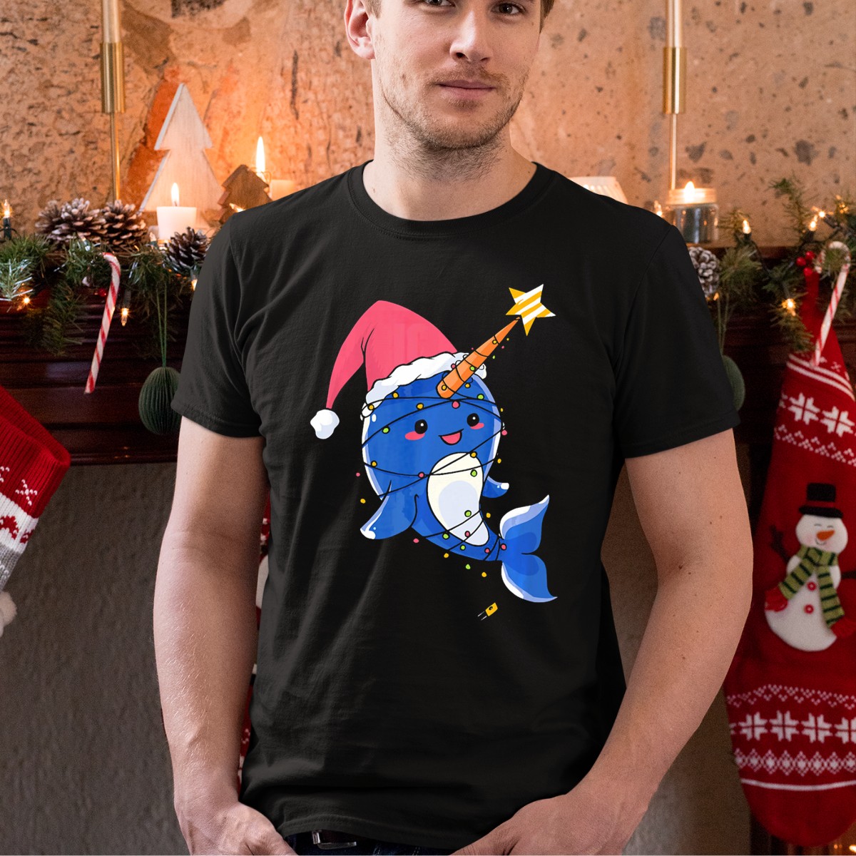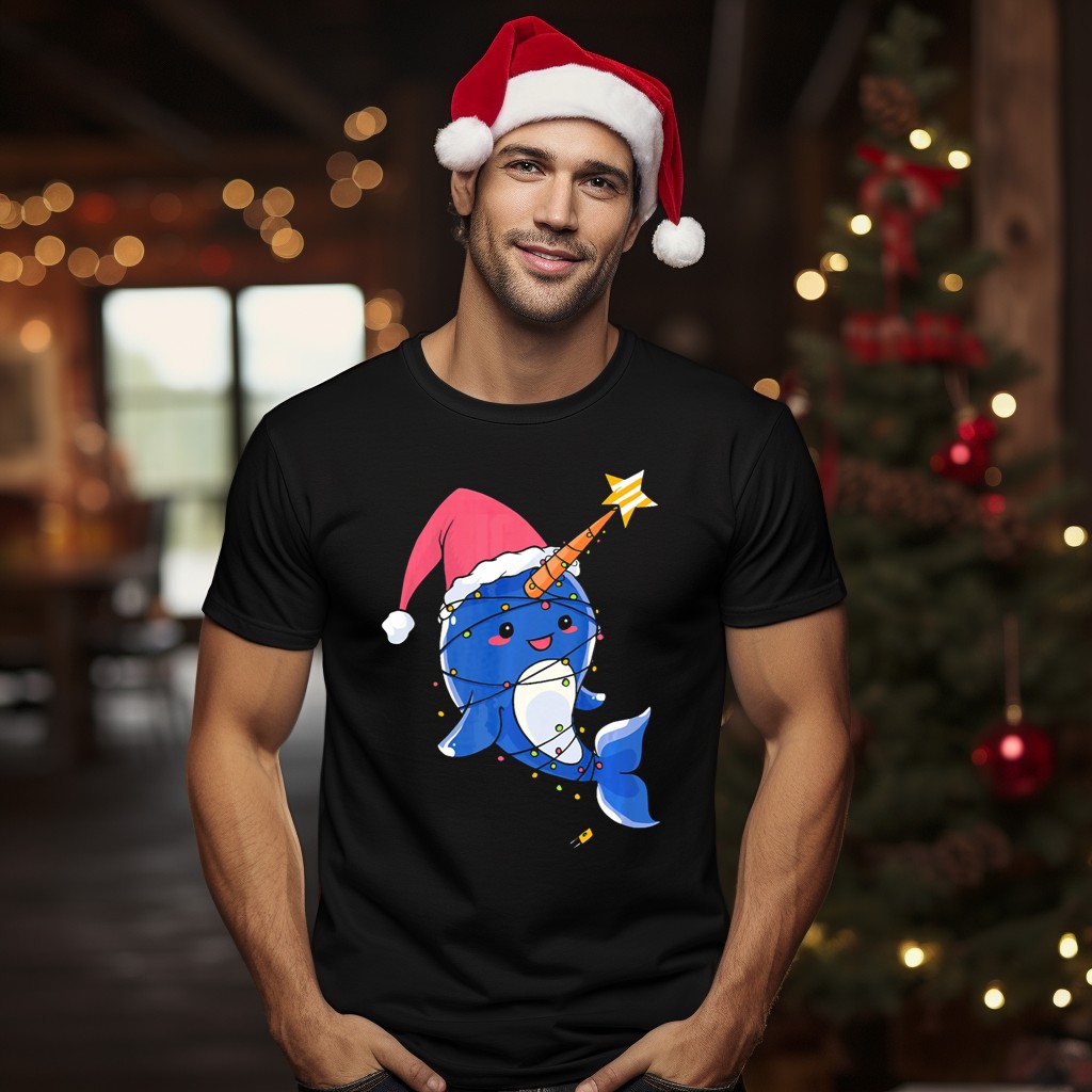 Celebrate the joy of the holiday season with our Sweet Baby Whale Christmas T-Shirt, featuring an adorable narwhal wearing a festive Santa hat surrounded by magical holiday lights and stars. Perfect for ocean lovers and anyone who wants to spread cheer during themed events or casual outings, this fan-made design is printed in the USA, ensuring quality and creativity. Wear it to holiday parties, family gatherings, or just around town to showcase your unique style and love for marine life!