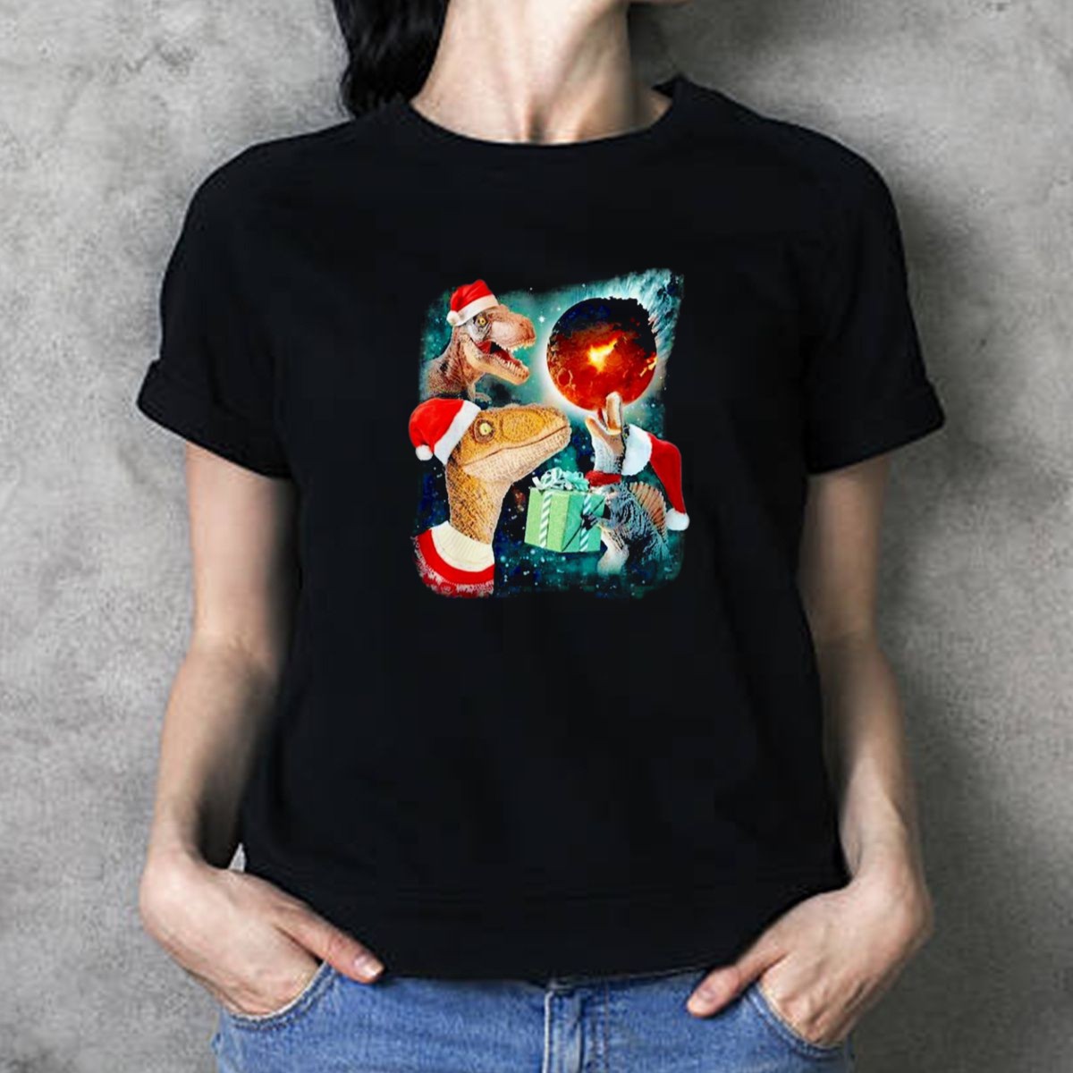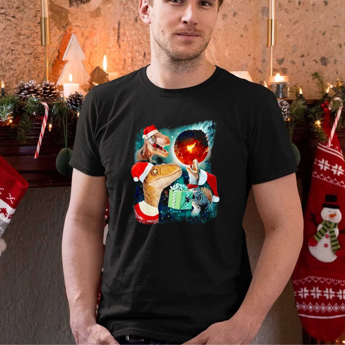 Be the first to review “T Rex Christmas Festive Santa Hat Dinosaur Planet Gift Explosion T Shirt”