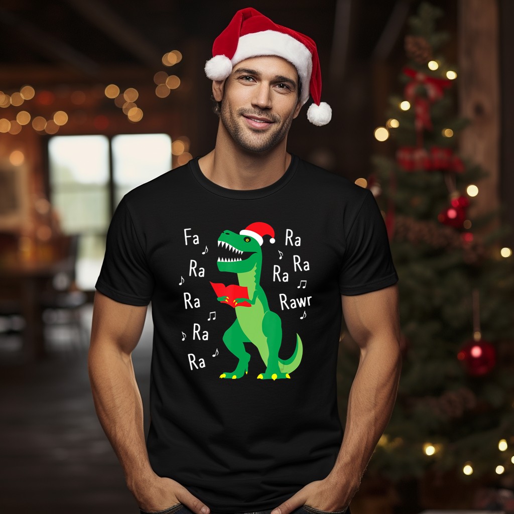 Unleash your holiday spirit with our T Rex Singing Fa Ra Ra Rawr In Santa Hat Christmas Carol T-Shirt! Perfect for dinosaur lovers and festive enthusiasts alike, this whimsical tee is designed to bring smiles and laughter at themed events, family gatherings, or just a casual day out. Made with a fan-made design printed in the USA, it’s a unique addition to your wardrobe that showcases your love for fun and creativity during the holiday season.