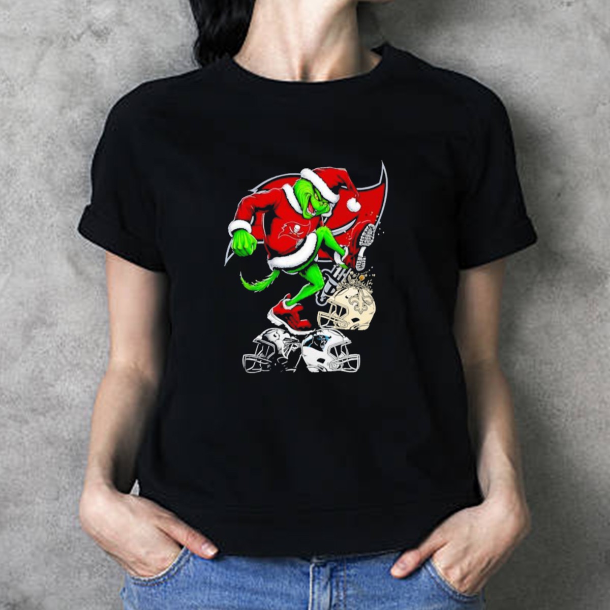 Get into the holiday spirit with our Tampa Bay Buccaneers Grinch Santa Stomping NFL Helmets Funny Christmas T-Shirt! Perfect for die-hard Buccaneers fans and anyone looking to add a dash of humor to their festive wardrobe, this shirt features a playful design that showcases your team pride while embracing the whimsical charm of the season. Whether you’re at a holiday party, a game day gathering, or just enjoying a casual day out, this shirt is a fun way to celebrate the holidays and your favorite team.