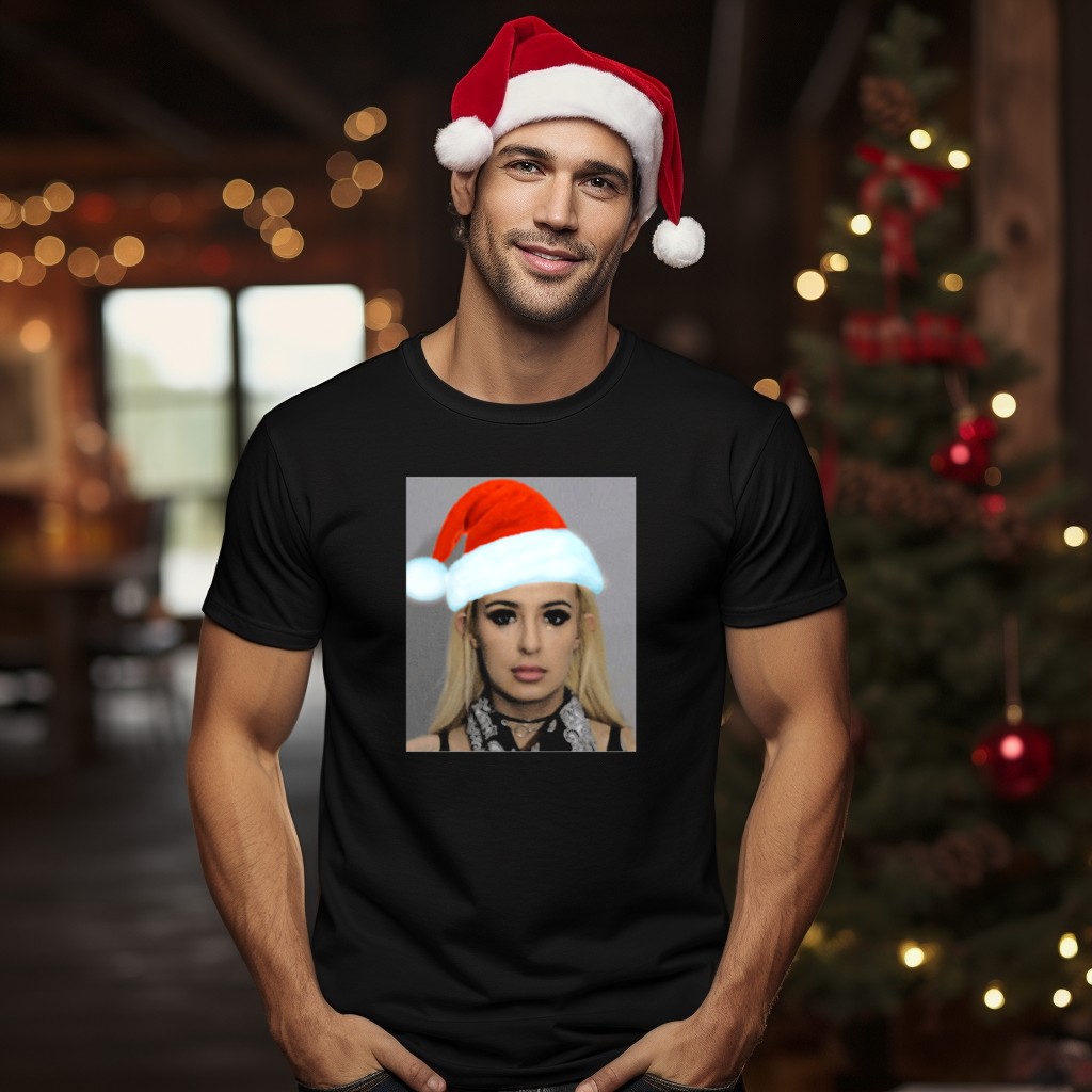Get ready to make a statement this holiday season with our Tana Mongeau Mugshot Santa Hat Christmas T-Shirt! Perfect for fans of Tana and those who love to embrace unique, fun fashion, this shirt is ideal for casual wear, themed events, or just spreading festive cheer during the holidays. Crafted for comfort and style, it features a fan-made design that’s printed right here in the USA, ensuring you stand out in the crowd.