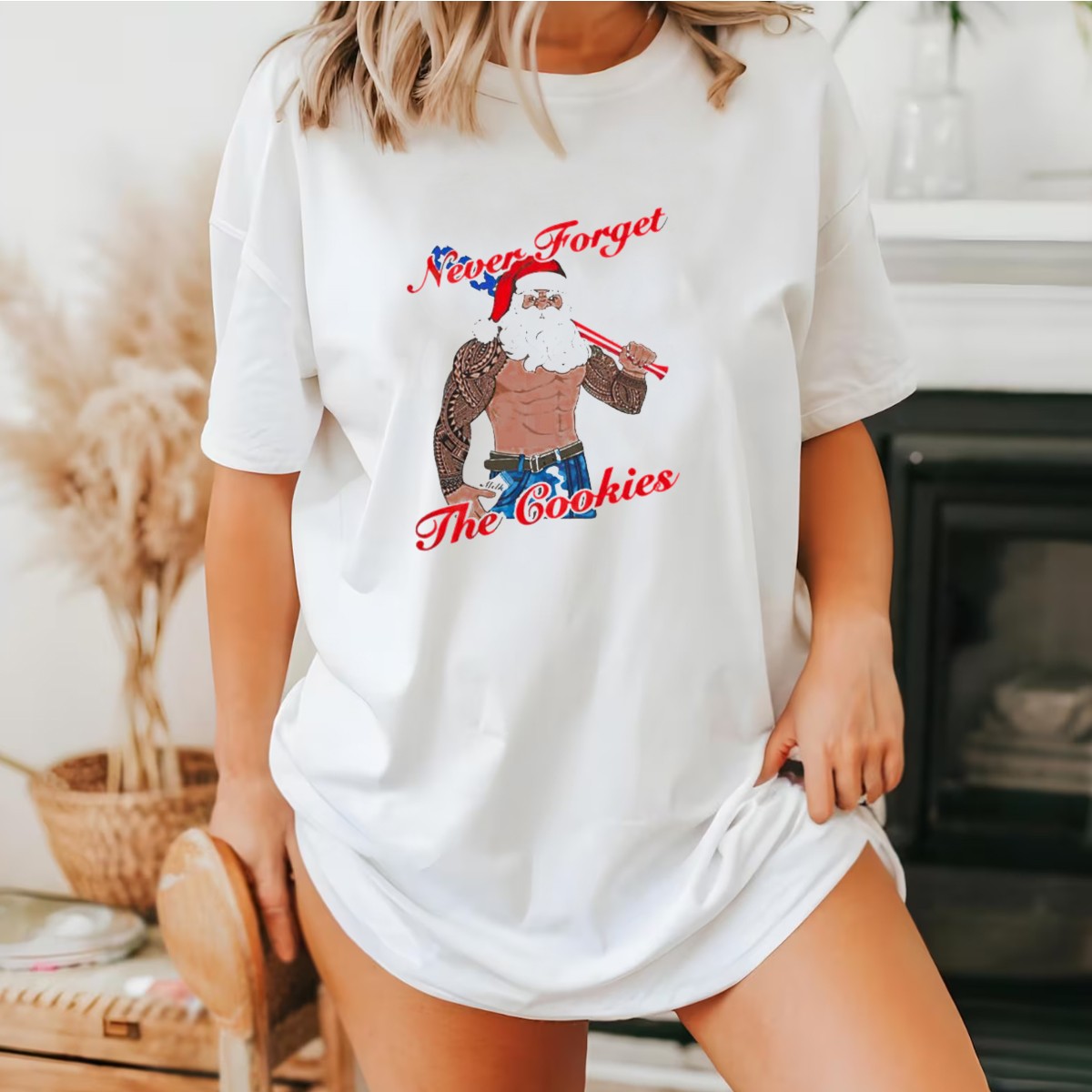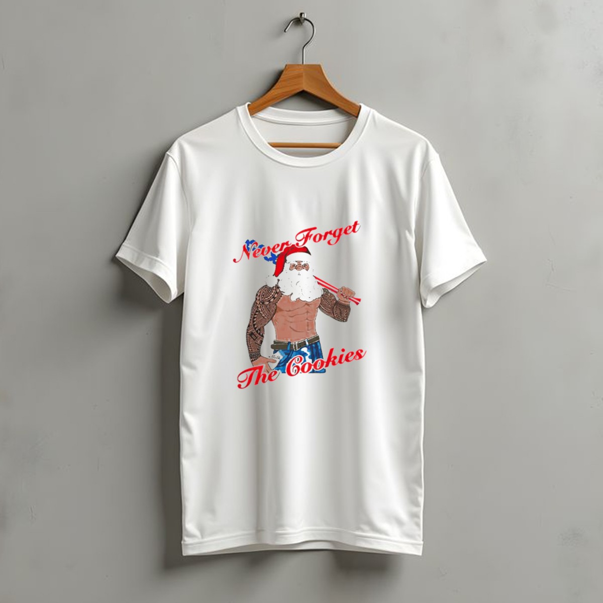 Celebrate the holiday spirit with our Tattoo Santa Never Forget The Cookies Christmas Holiday T-Shirt! Perfect for festive gatherings, themed events, or casual daily wear, this shirt is designed for anyone who loves to embrace the quirky side of Christmas. Featuring a fun and unique fan-made design, printed right here in the USA, this tee is a must-have for those who want to spread cheer and joy during the holiday season.