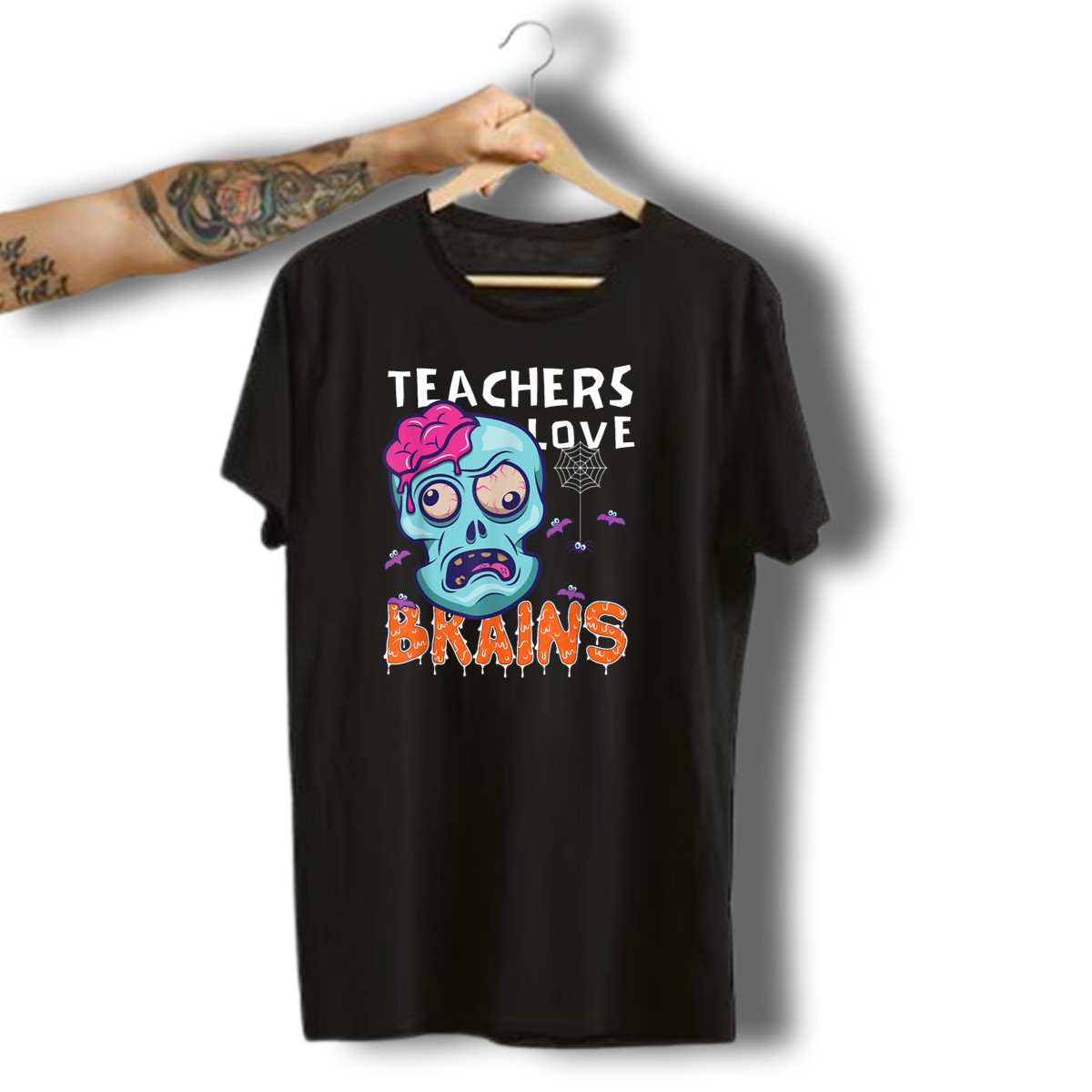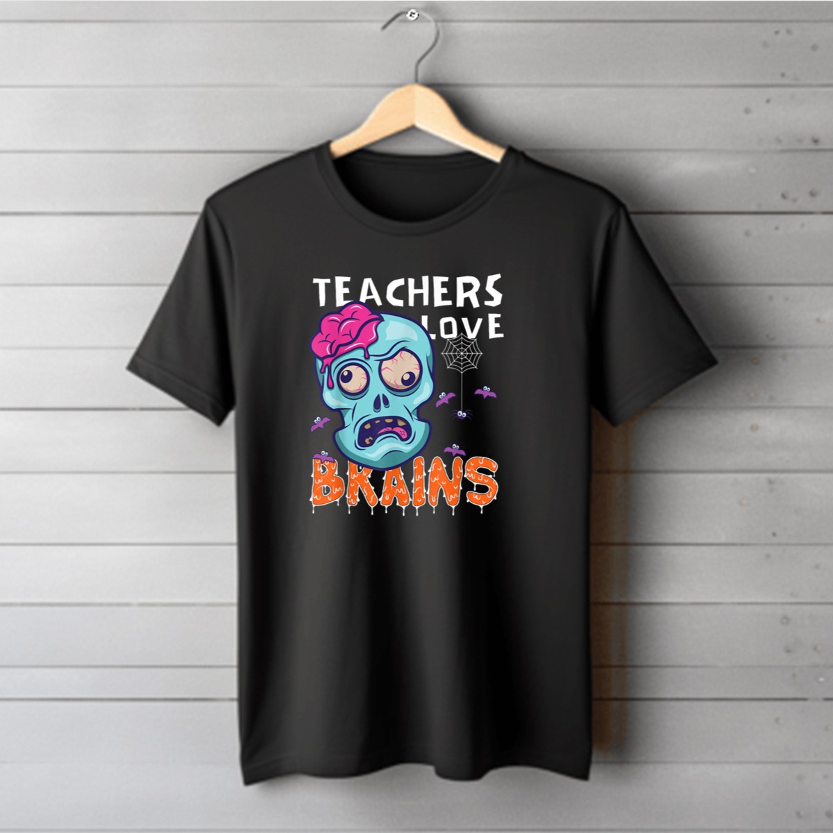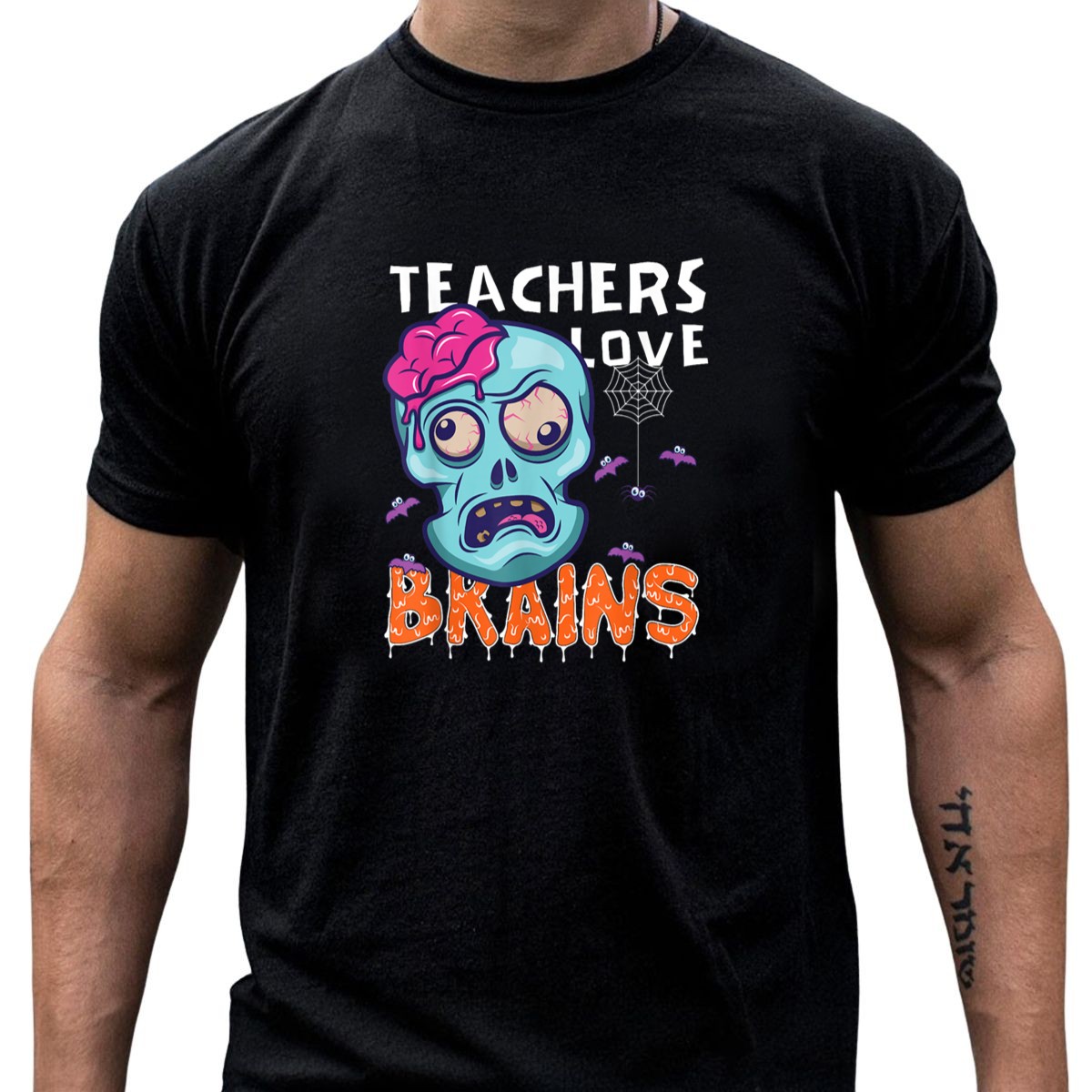 Be the first to review “Teachers Love Brains Halloween Zombie Skull Bats Spiderweb T-Shirt”