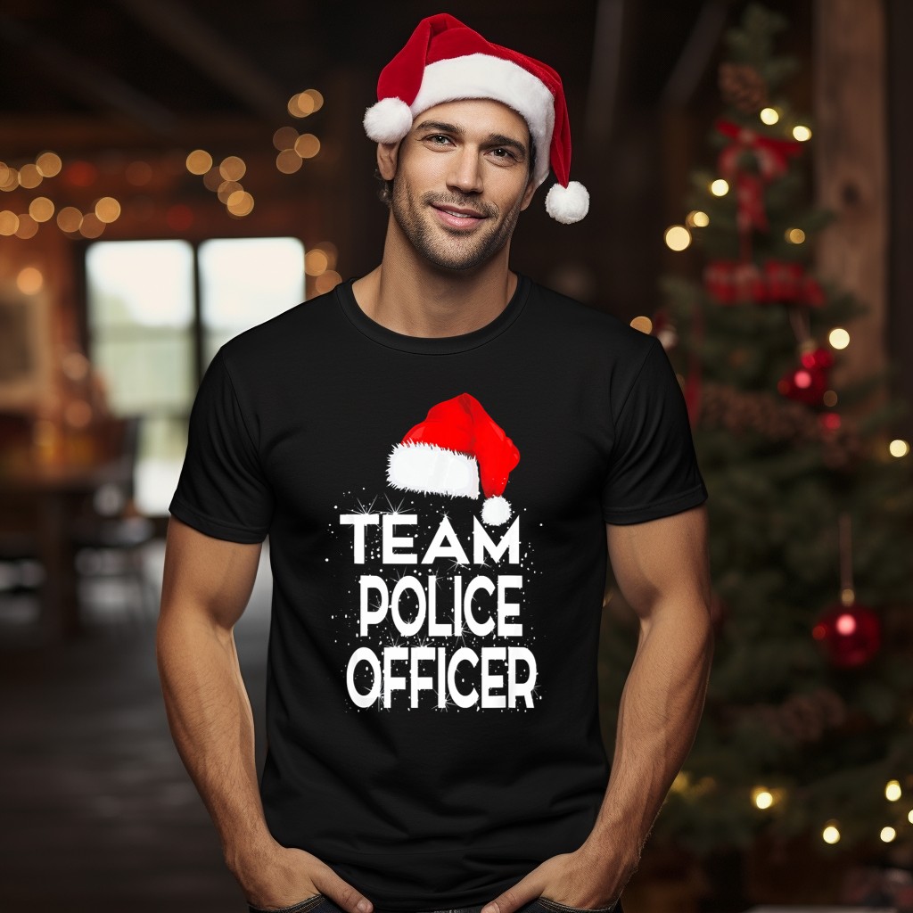 Celebrate the holiday spirit with our Team Police Officer Santa Hat Christmas T-Shirt! This festive tee is perfect for law enforcement enthusiasts and anyone who loves to spread cheer during the holiday season. Whether you’re attending a themed event, casual gatherings, or simply enjoying daily wear, this shirt brings a unique blend of fun and pride. Printed in the USA, it showcases a fan-made design that embodies the joy of Christmas and the dedication of our police officers.