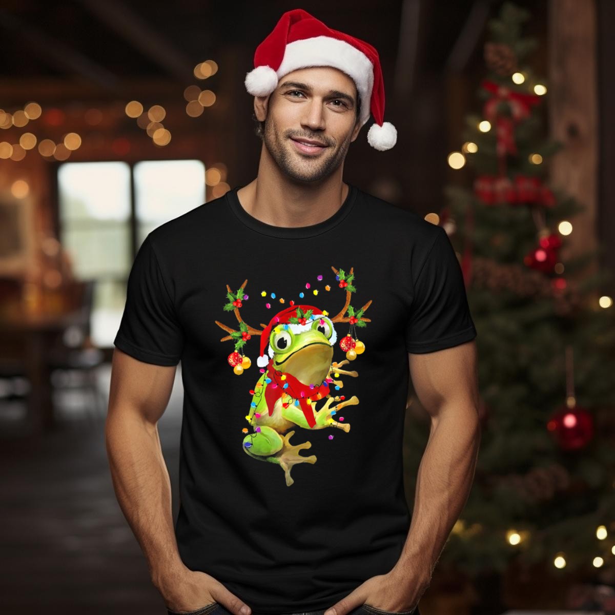 Celebrate the holiday season with our Tee89S Frog Christmas T-Shirt, a playful and festive addition to your wardrobe! This shirt features a delightful design of a frog sporting reindeer antlers, a Santa hat, and twinkling holiday lights, making it perfect for anyone who wants to spread joy and laughter during the festivities. Ideal for casual outings, themed events, or simply brightening up your daily wear, this fan-made design printed in the USA is a unique way to express your holiday spirit while staying comfortable.