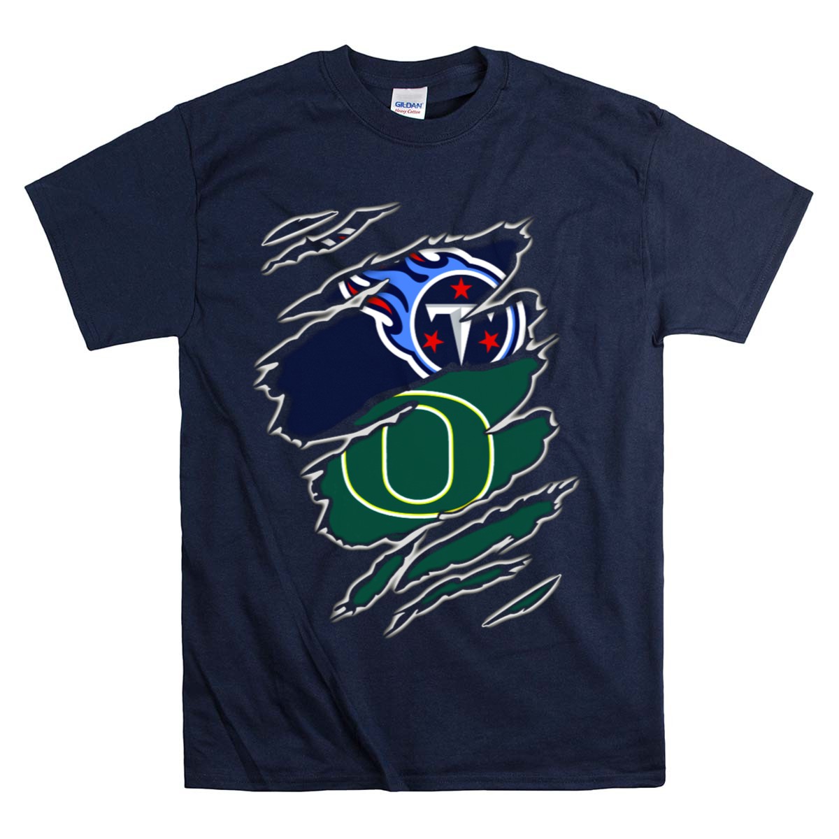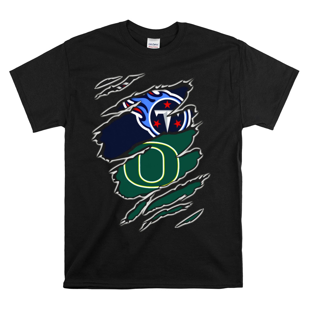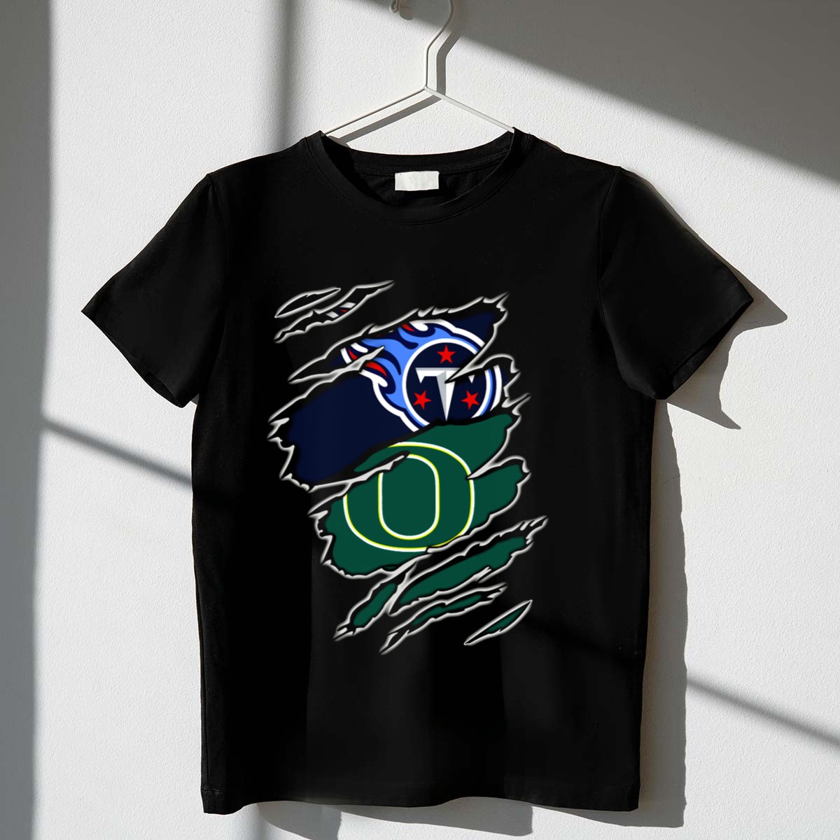 Be the first to review “Tennessee Titans And Oregon Ducks Ripped Logo Claw Marks T-Shirt”