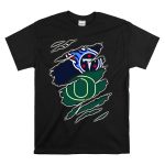 Tennessee Titans And Oregon Ducks Ripped Logo Claw Marks T-Shirt