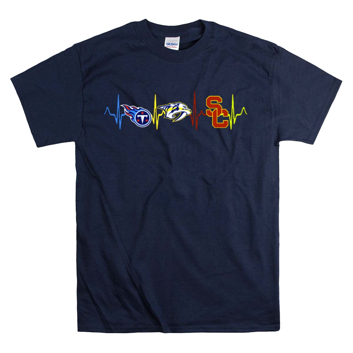 Show your unwavering support for the Tennessee Titans, Nashville Predators, and USC Trojans with our Heartbeat Line T-Shirt. This fan-made design is perfect for sports enthusiasts and anyone who loves to showcase their team pride. Ideal for casual wear, themed events, or daily outings, this shirt combines comfort and style, making it a must-have for any true fan. Proudly printed in the USA, this tee is a unique addition to your wardrobe that celebrates your favorite teams in a bold and stylish way.