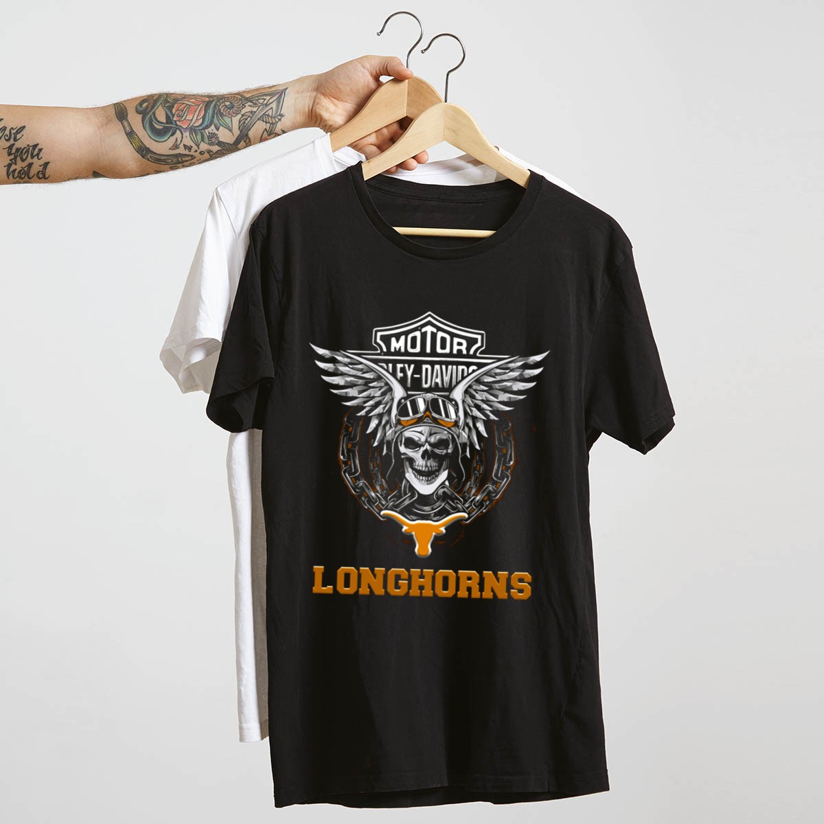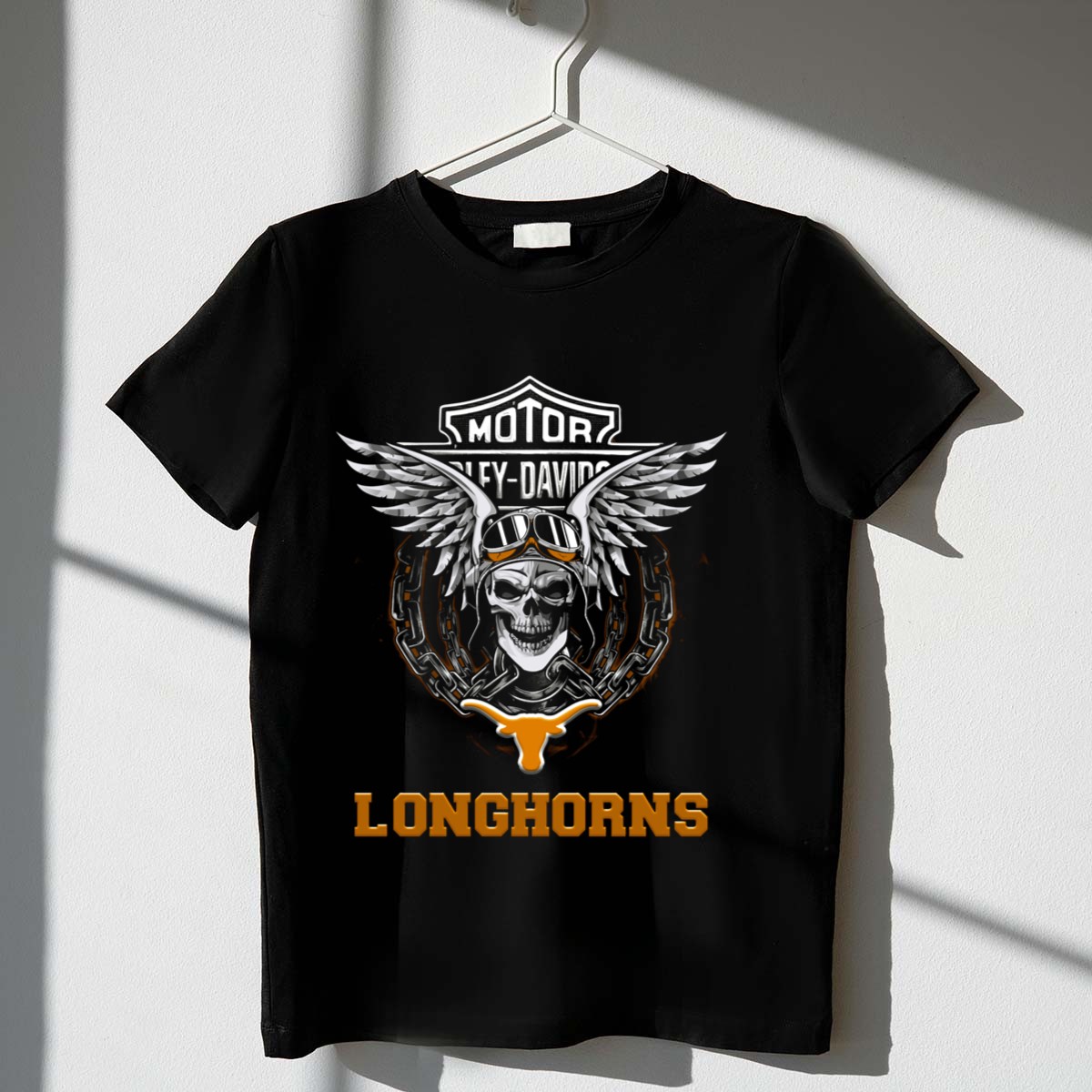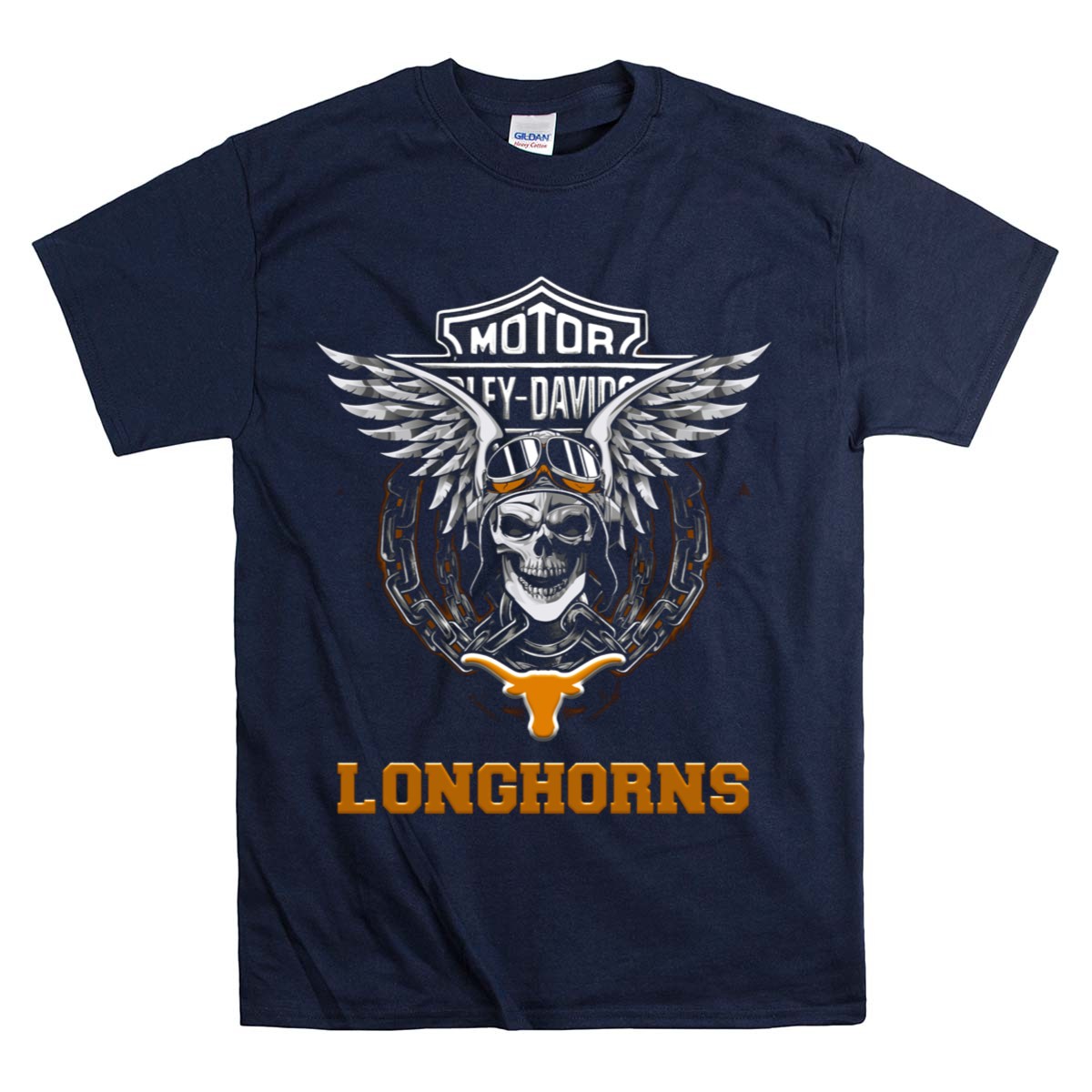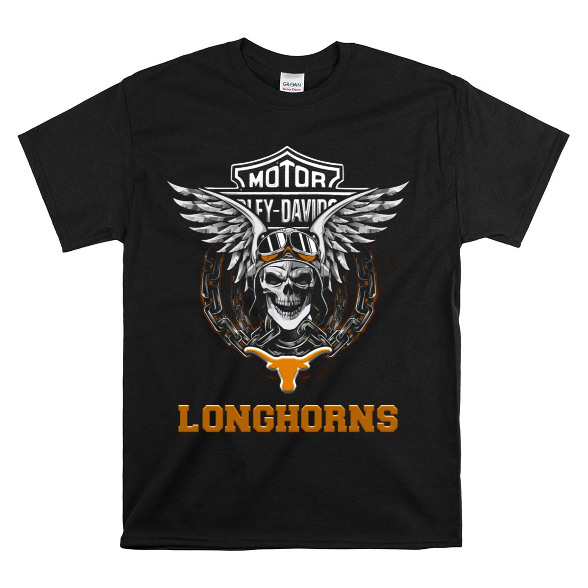 Show your unwavering support for the Texas Longhorns with this eye-catching HD Football Fans Motorcycle Skull Wings T-Shirt. Perfect for die-hard fans and motorcycle enthusiasts alike, this unique design combines team spirit with a bold, edgy look that’s ideal for casual outings, themed events, or daily wear. Made with high-quality materials and printed right here in the USA, this shirt is a must-have for anyone looking to make a statement while cheering for their favorite team.