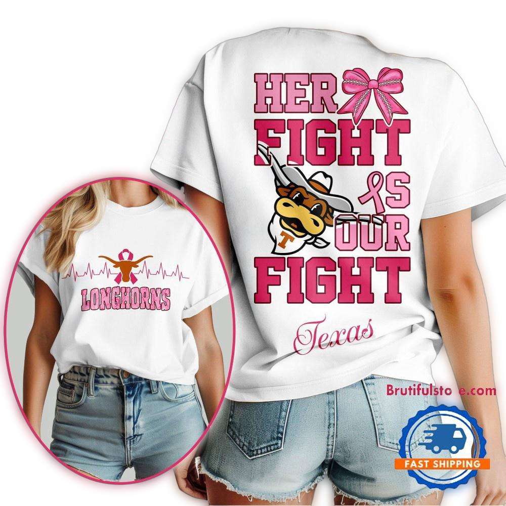 Show your support for the Texas Longhorns with our Her Fight Is Our Fight Vintage All Over Print T-Shirt, perfect for fans who want to showcase their spirit in a stylish way. This casual tee is ideal for game days, meet-ups with friends, or simply lounging around while representing your team with pride.