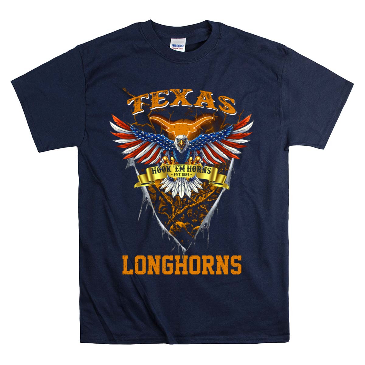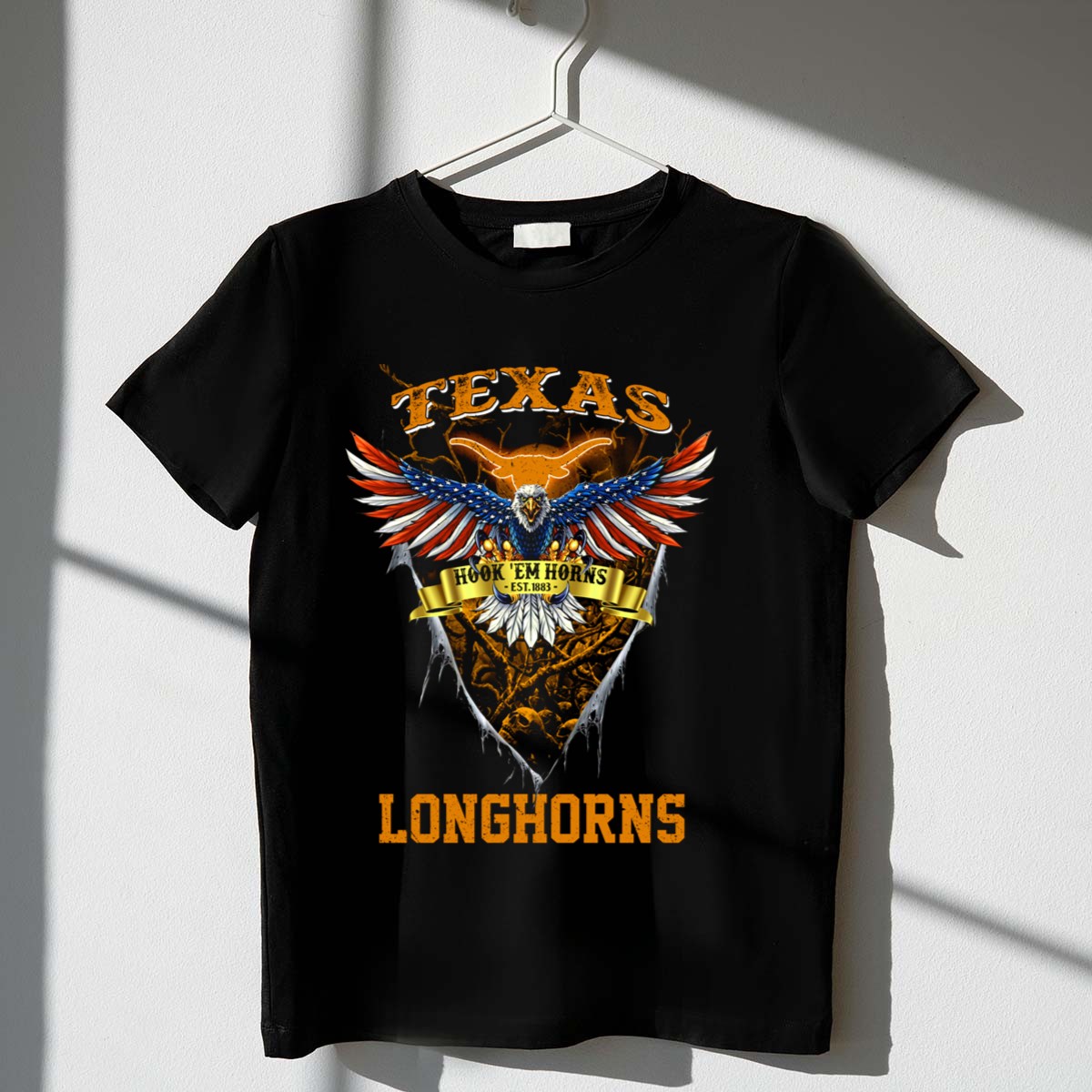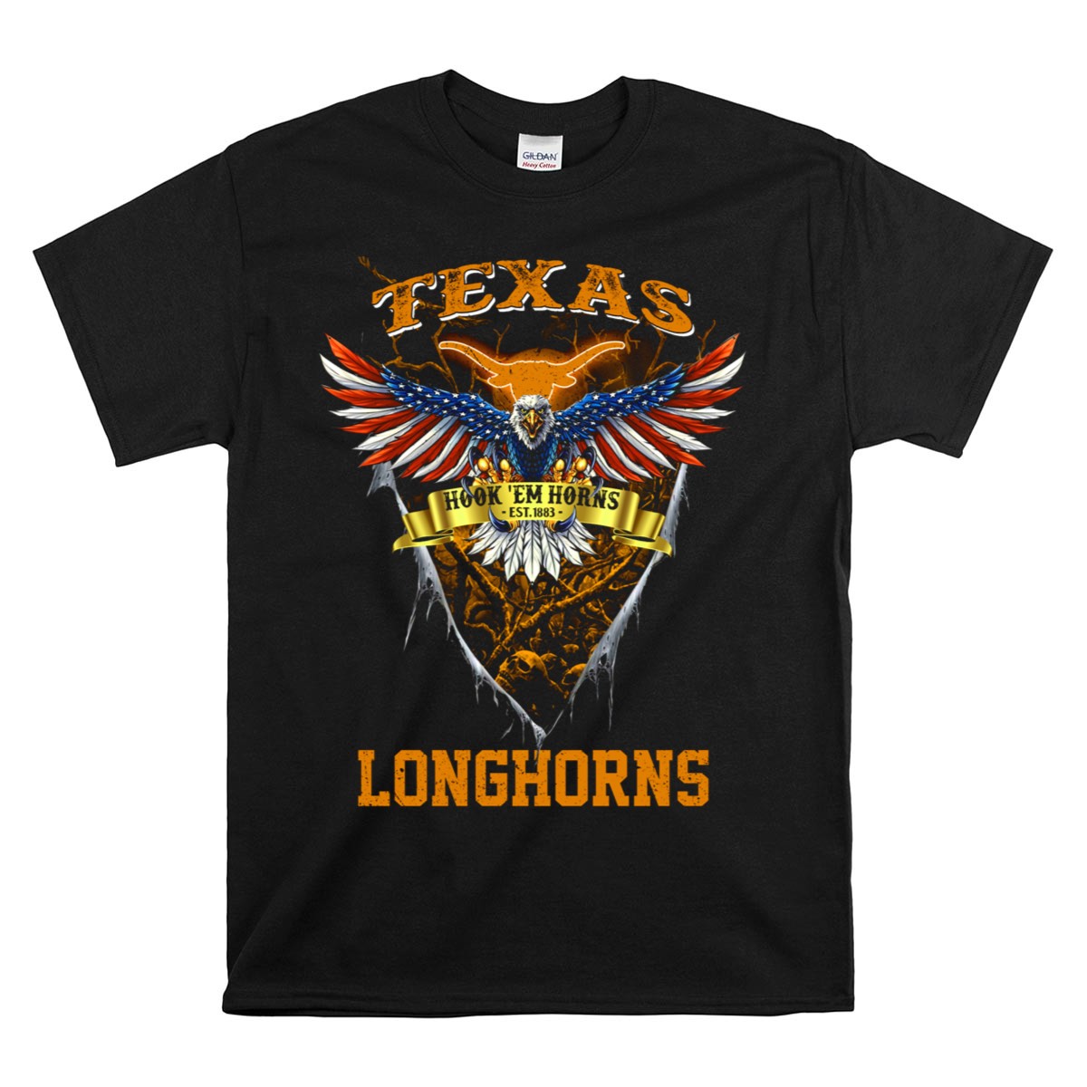 Texas Longhorns Hook ‘Em Horns Est 1883 Eagle Shield T-Shirt
