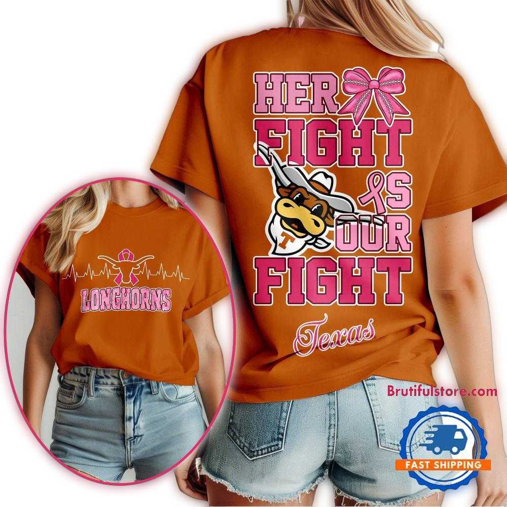 Texas Longhorns Ncaa Her Fight Is Our Fight Breast Cancer All Over Print T Shirt