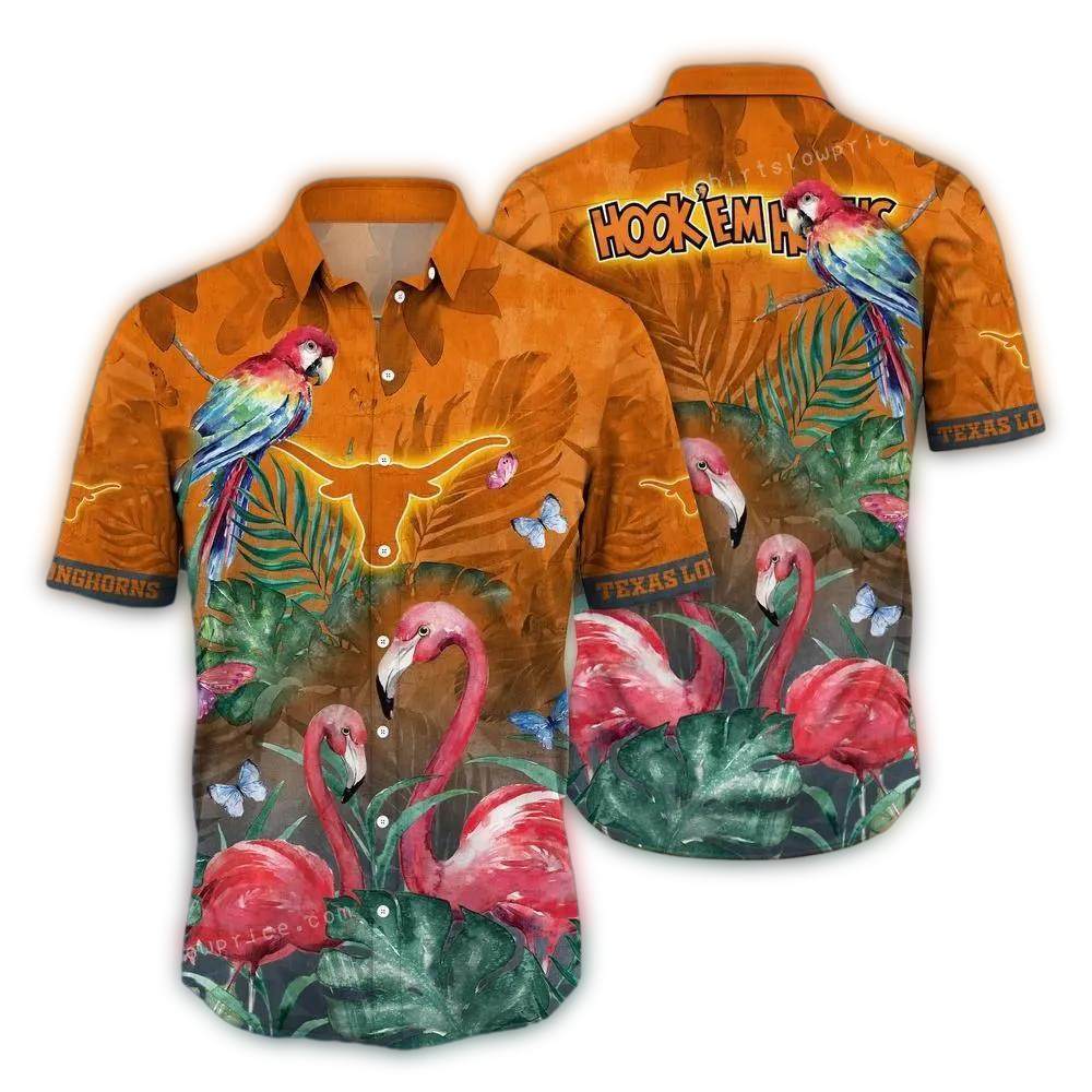 Texas Longhorns Parrot And Flamingo Floral Art Hawaiian Shirt