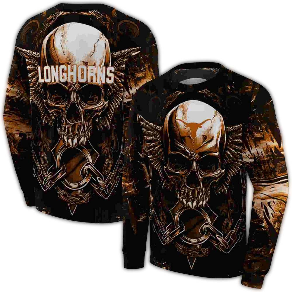 Texas Longhorns Skull Artwork All Over Print Sweatshirt