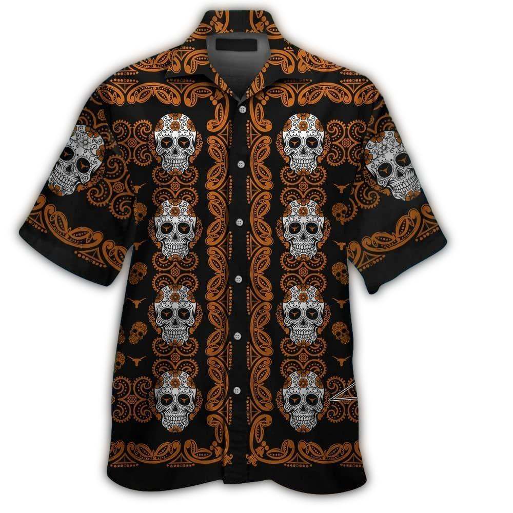 Introducing the Texas Longhorns Skull Sugar Floral Pattern Hawaiian Shirt, a bold statement piece for anyone looking to showcase their Texas pride with a unique twist. Perfect for summer outings, beach vacations, or casual get-togethers, this shirt combines vibrant graphics with a laid-back vibe, making it ideal for spirited fans and trendsetters alike.