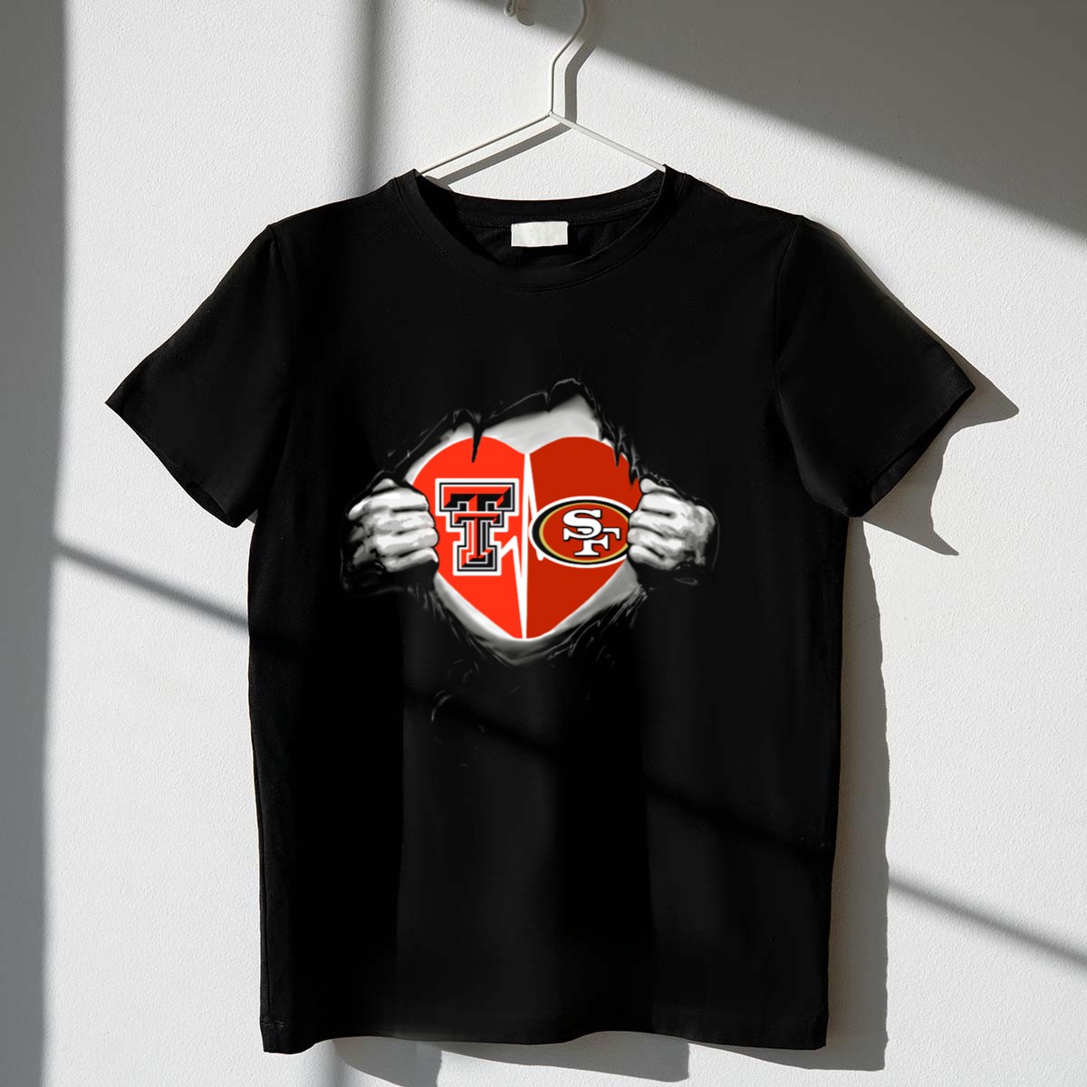 Show your unwavering support for the Texas Tech 49ers with this eye-catching Heart Rip Logo Fusion T-Shirt, designed for true fans who want to wear their passion proudly. Perfect for casual outings, themed events, or just daily wear, this shirt combines comfort and style, making it a must-have for any dedicated supporter. Crafted in the USA, its unique fan-made design showcases your love for the team while offering a soft and breathable fit for all-season wear.