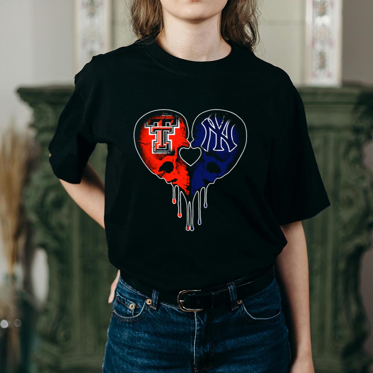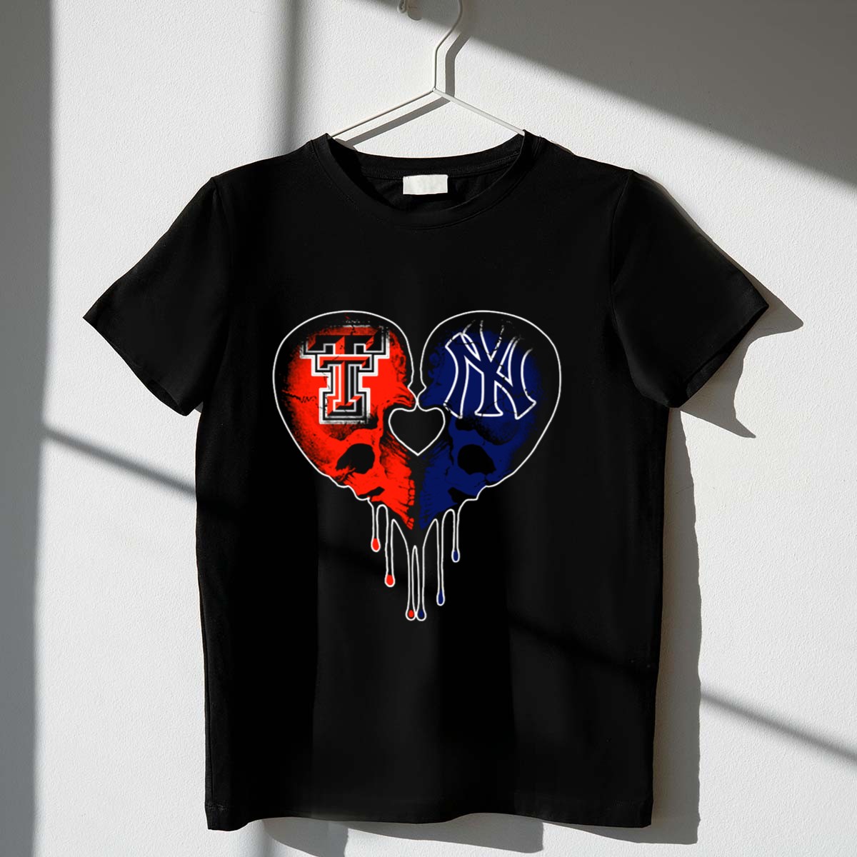 Show off your unique style with the Texas Tech and Yankees Dripping Skull Heart Love T-Shirt! This fan-made design is perfect for sports enthusiasts and anyone who loves to express their passion for their favorite teams. Ideal for casual outings, themed events, or simply adding some flair to your daily wear, this shirt combines comfort and creativity, making it a standout piece in your wardrobe. Printed in the USA, it’s a must-have for those who appreciate both style and team spirit.