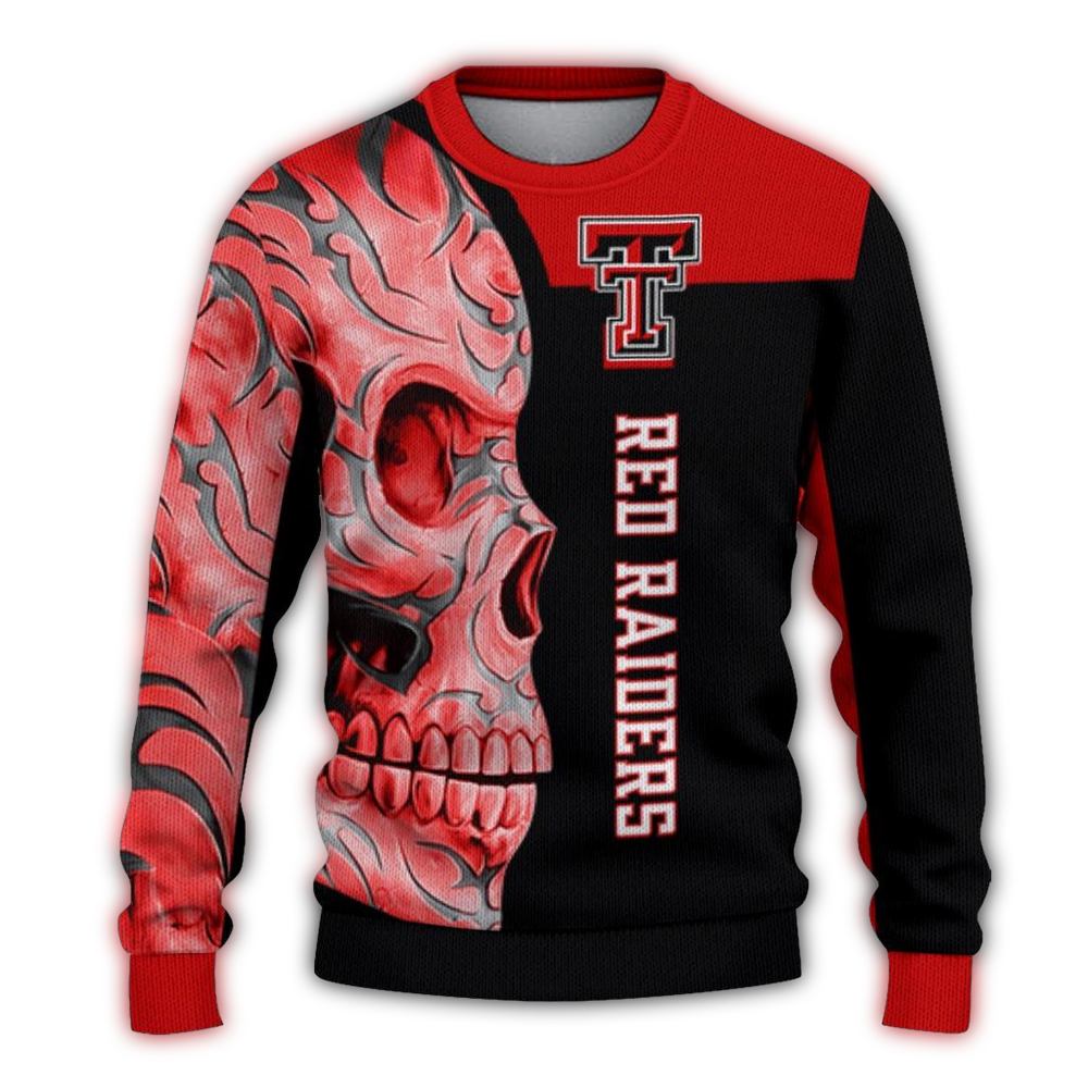 Get ready to show off your Texas Tech pride with our Texas Tech Red Raiders Skull Swirl Ugly Sweater! Perfect for die-hard fans and anyone looking to add a touch of festive fun to their winter wardrobe, this sweater is ideal for game days, holiday parties, or cozy nights in. With its eye-catching design, you’ll stand out in the crowd while keeping warm and stylish.