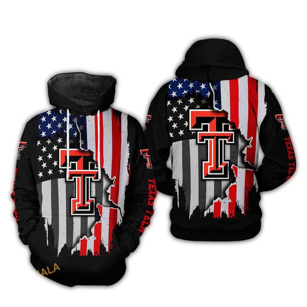 Show your spirit in style with the Texas Tech Red Raiders US Flag Distressed All-Over Print Hoodie. Perfect for dedicated fans who want to showcase their love for their team, this hoodie is ideal for game days, casual outings, or simply lounging at home. Its unique all-over design combines school pride with a bold, distressed look, making it a standout piece in any wardrobe.
