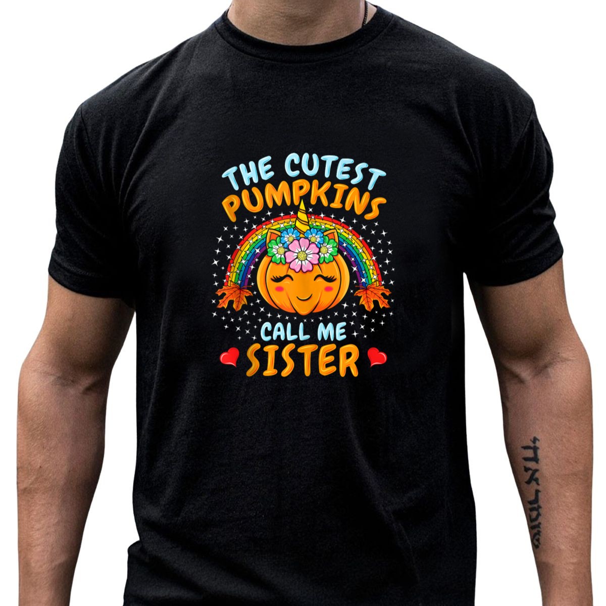 The Cutest Pumpkins Call Me Sister Halloween Unicorn Pumpkin Flowers And Rainbow T-Shirt
