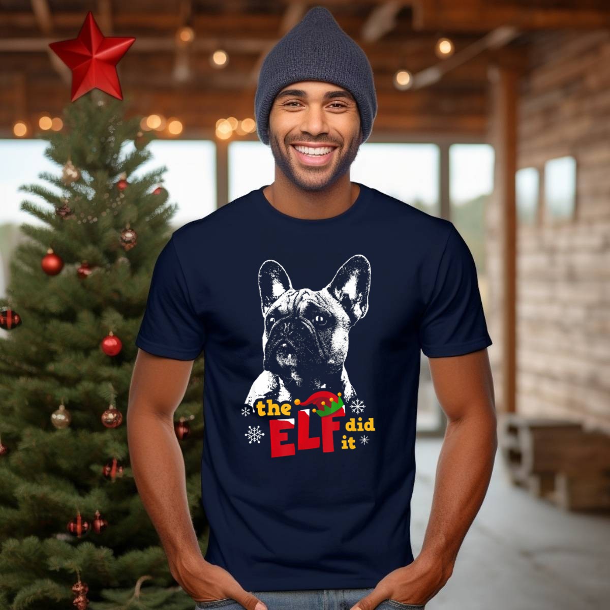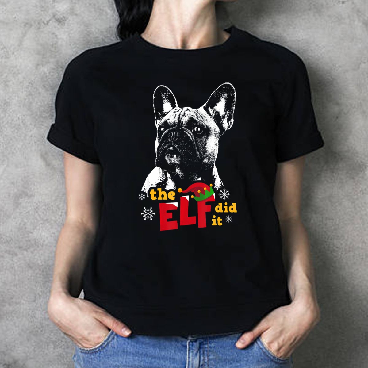 Be the first to review “The Elf Did It Funny French Bulldog Christmas Hat Snowflakes T-Shirt”