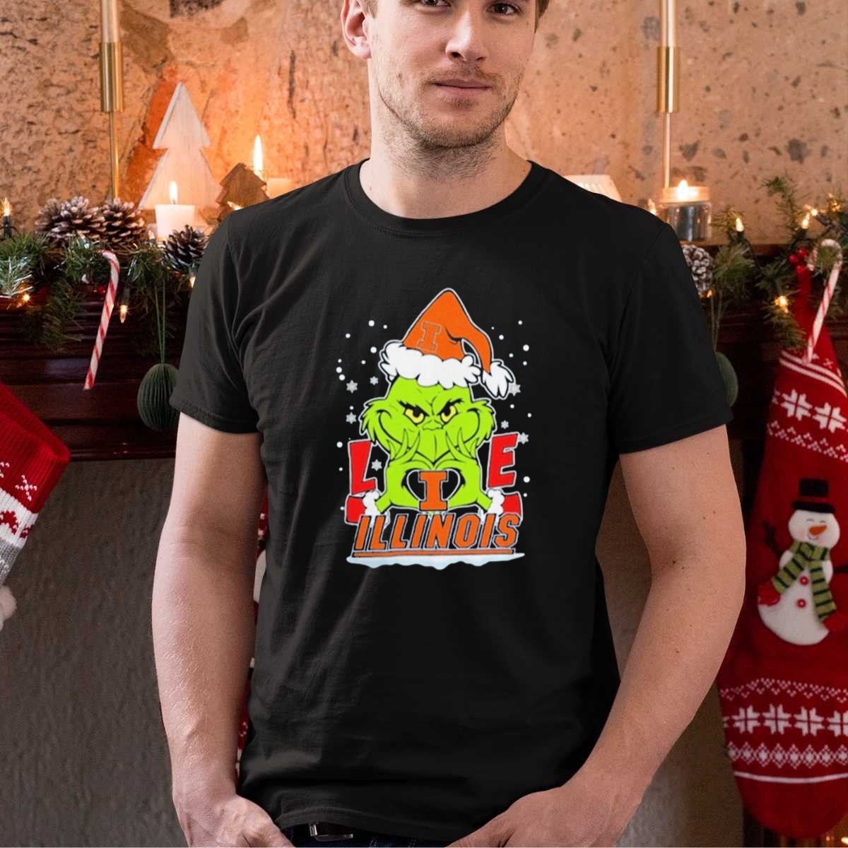 Celebrate the holiday season with our fun and festive “The Grinch Love Illinois Football” T-shirt, perfect for fans who want to showcase their love for both Christmas and their favorite team! Made for everyone, this shirt is ideal for casual wear, themed events, or daily outings during the holiday festivities. With a unique fan-made design printed right here in the USA, it’s a must-have for any Illinois football enthusiast looking to spread some cheer!