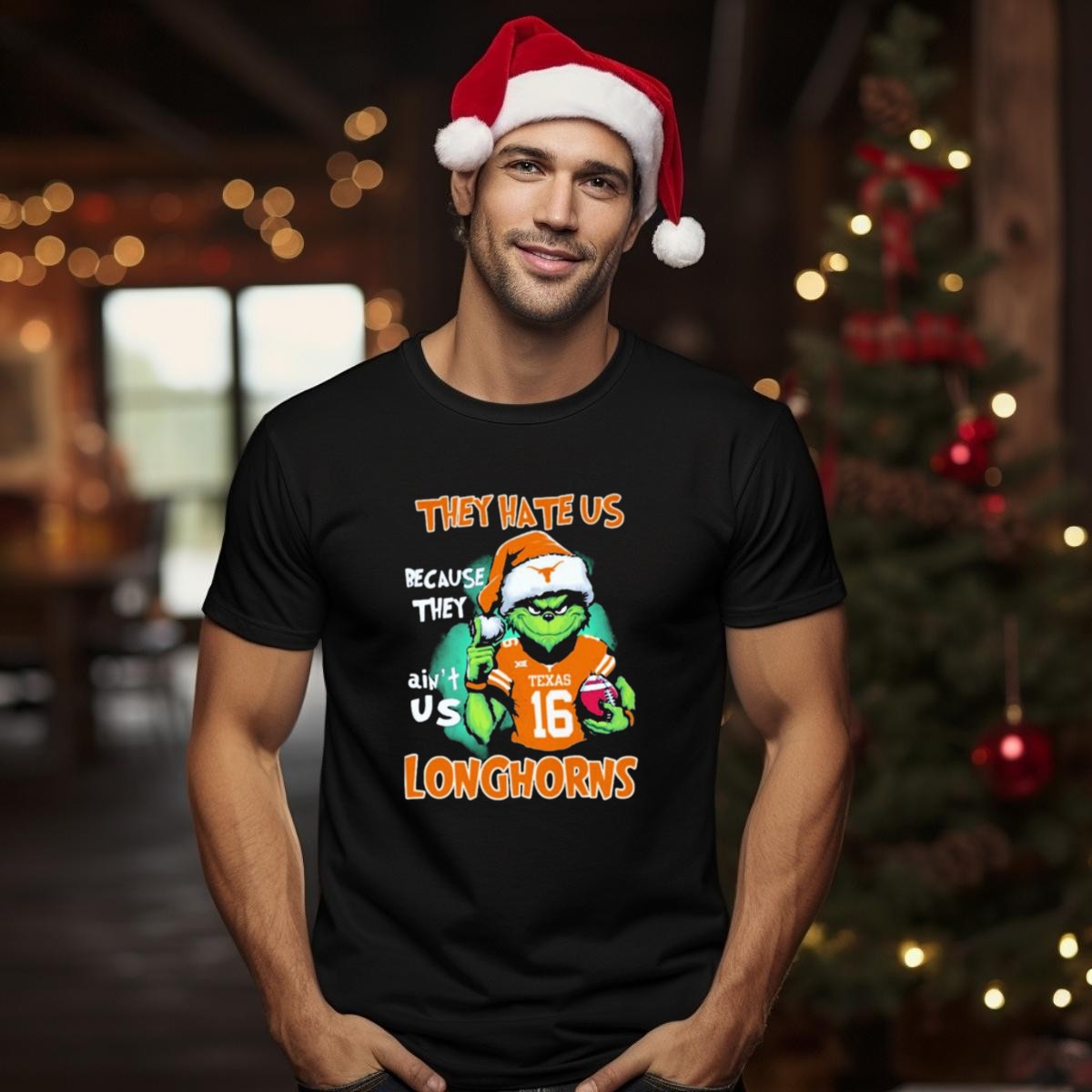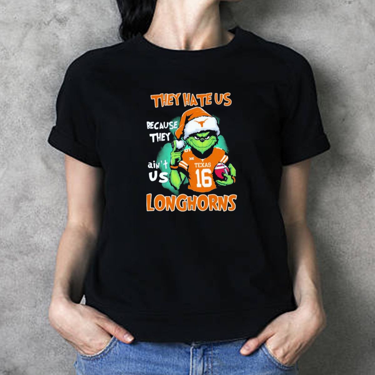 The Grinch They Hate Us Because Aint Us Texas Longhorns Christmas Football 16 T-Shirt