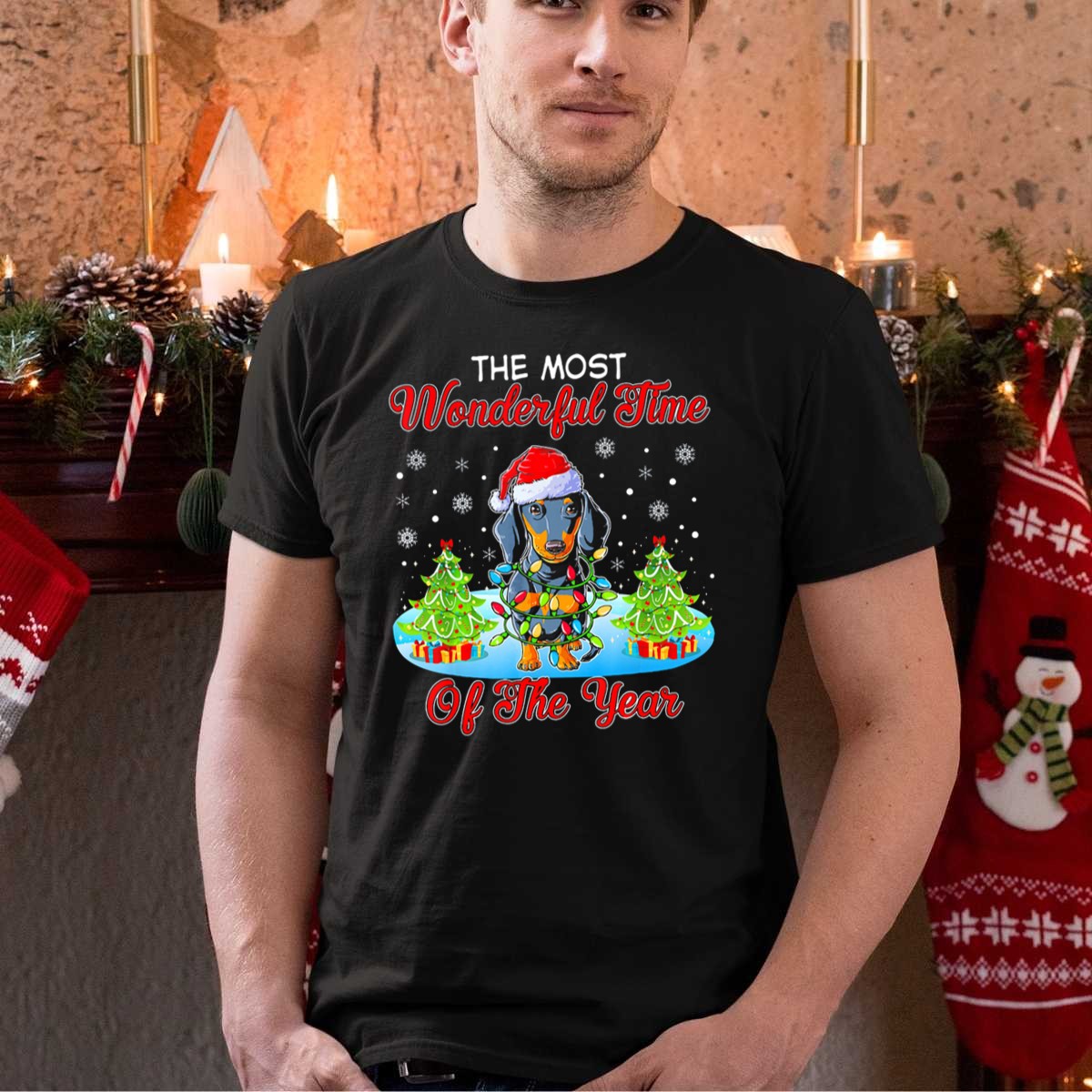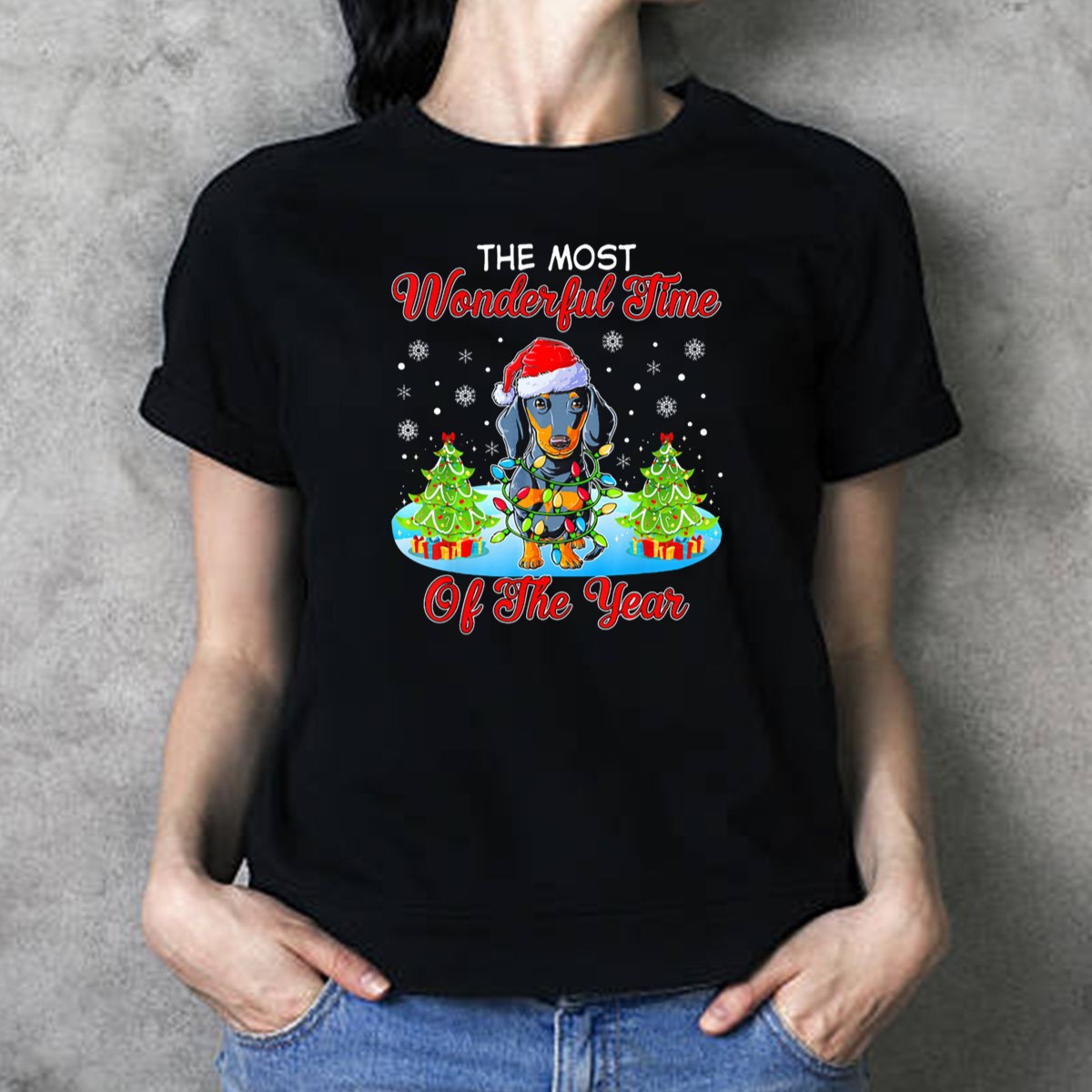 Be the first to review “The Most Wonderful Time Of The Year Christmas Dachshund Dog With Santa Hat And Festive Lights T-Shirt”
