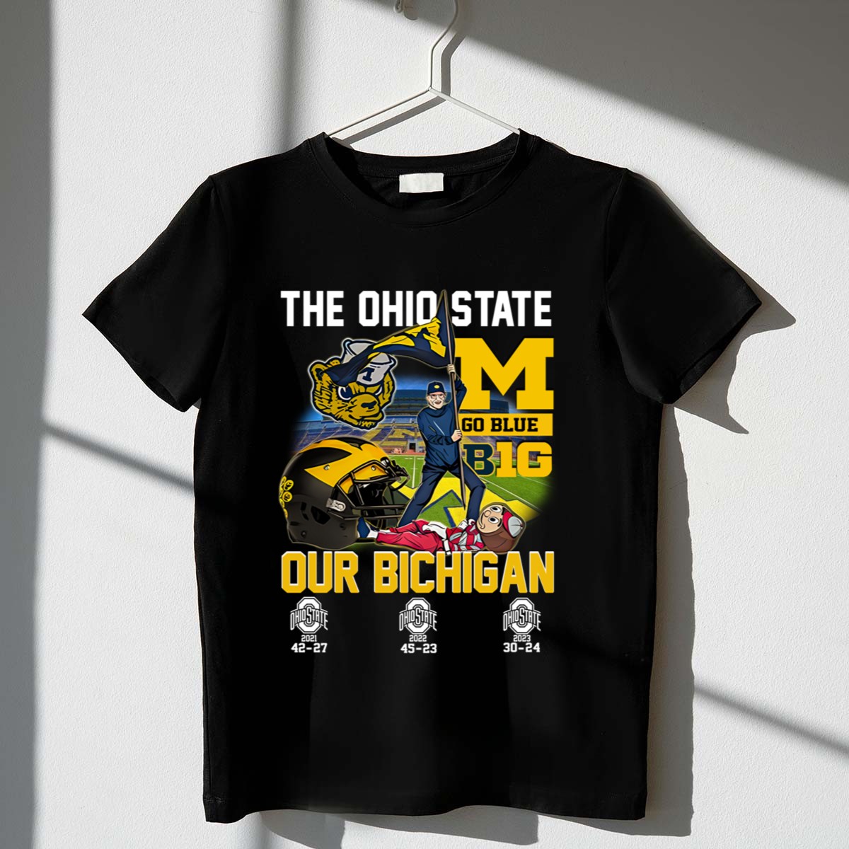 Show your unwavering support for your favorite team with the Ohio State Go Blue B1G Our Bichigan Shirt! This fan-made design is perfect for die-hard Ohio State fans who want to make a statement at casual outings, themed events, or while enjoying daily wear. Crafted for comfort and style, this shirt combines a classic fit with a bold graphic that proudly showcases your team spirit, making it a must-have in any Buckeyes fan’s wardrobe.