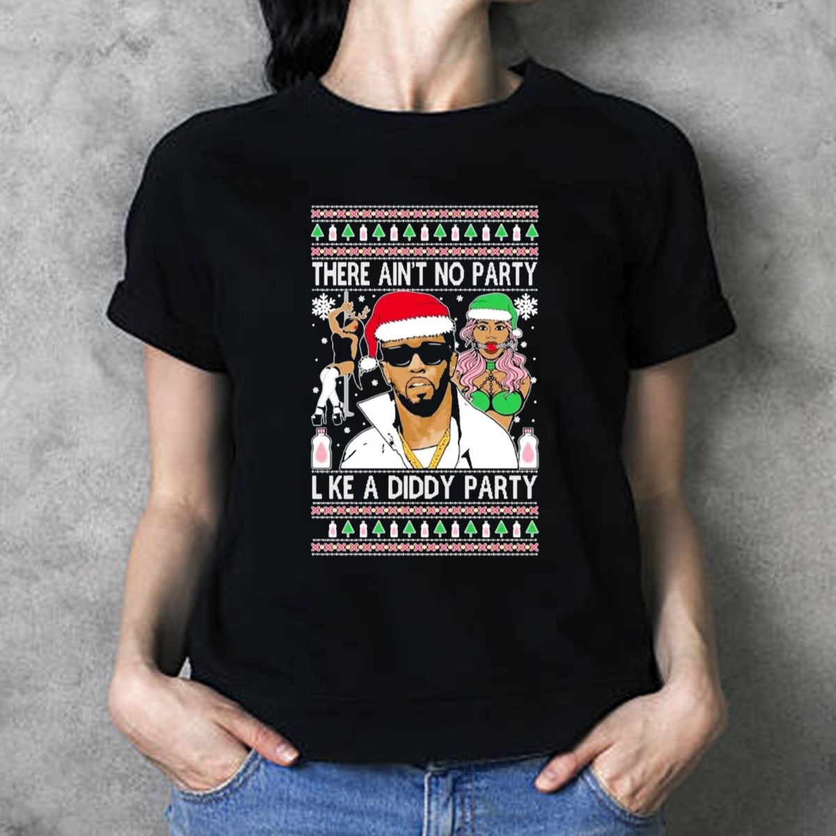 There Aint No Party Like A Diddy Party Ugly Christmas Sweater Featuring Holiday Icons T-Shirt